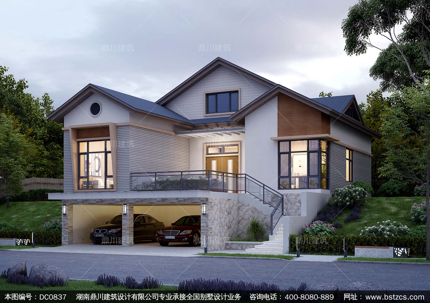 坡地一層帶架空層別墅設(shè)計(jì)圖紙及效果圖,新農(nóng)村自建房設(shè)計(jì),鼎川建筑