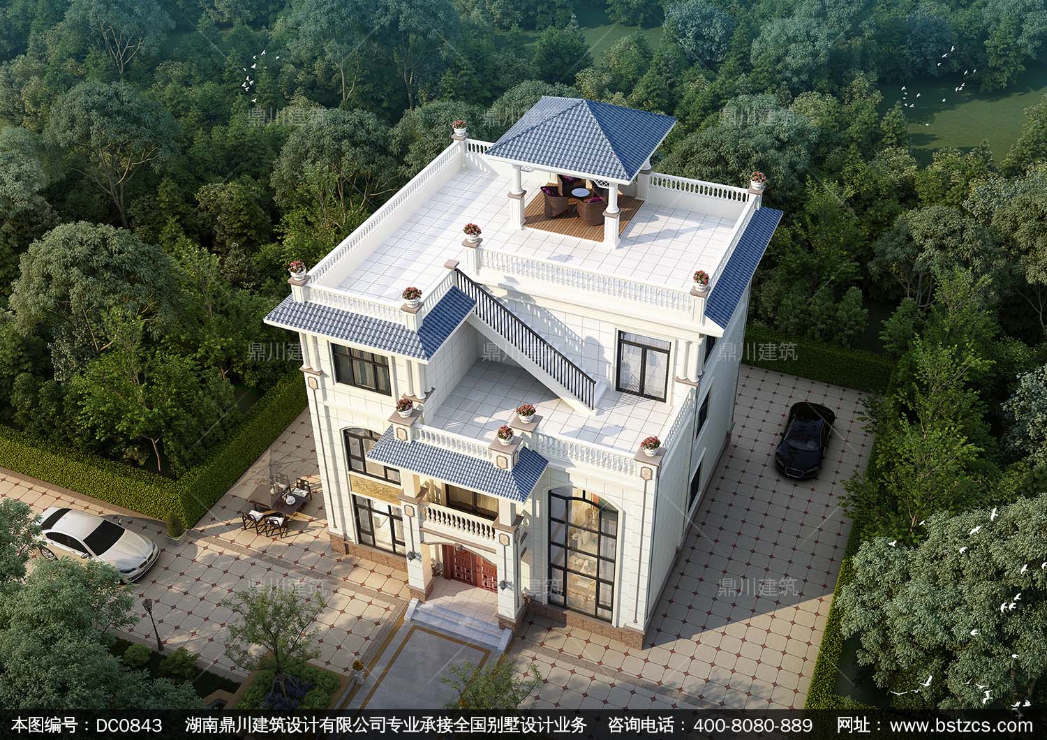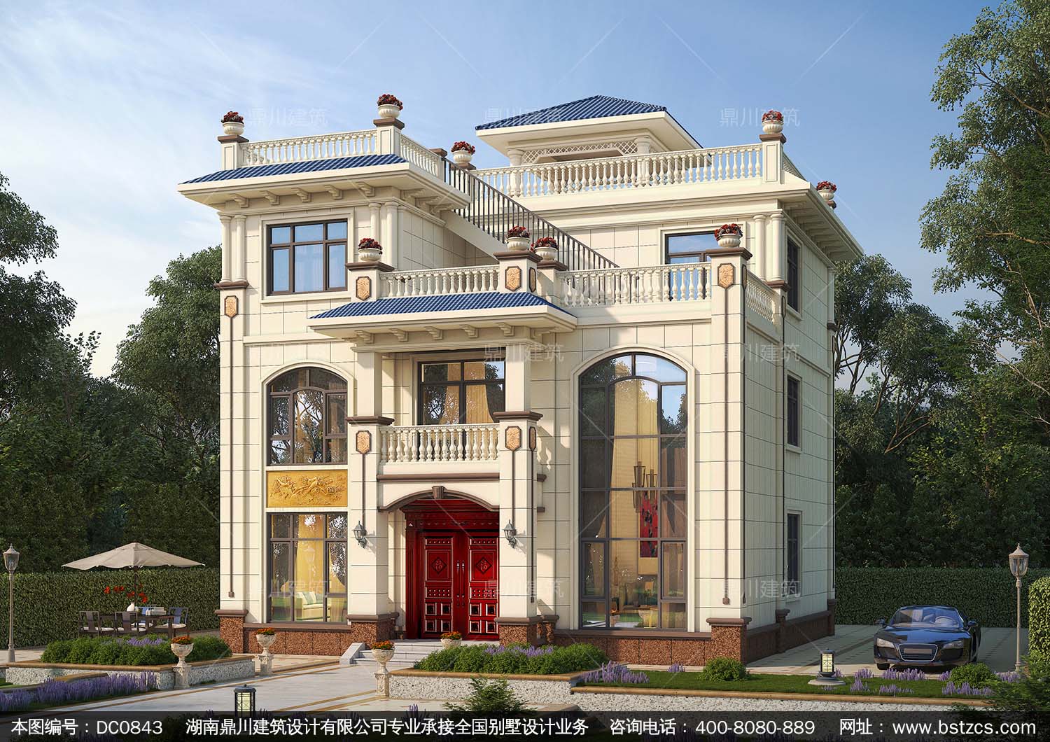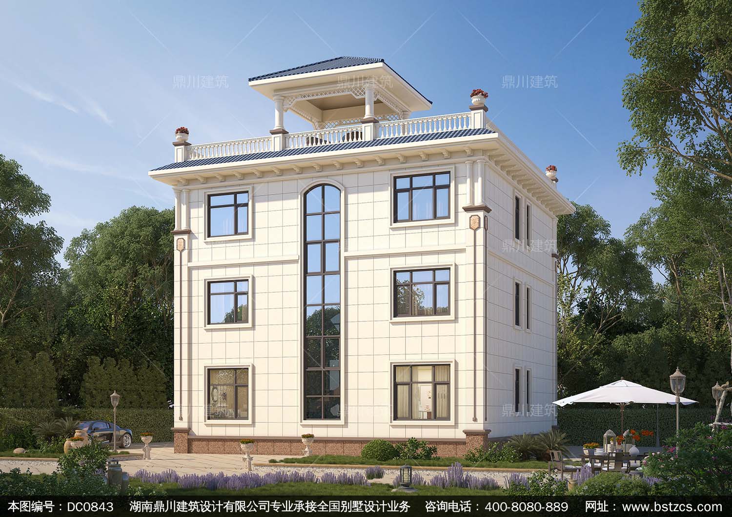 復式三層帶涼亭別墅施工圖紙及效果圖_新農村歐式自建房設計,鼎川建筑