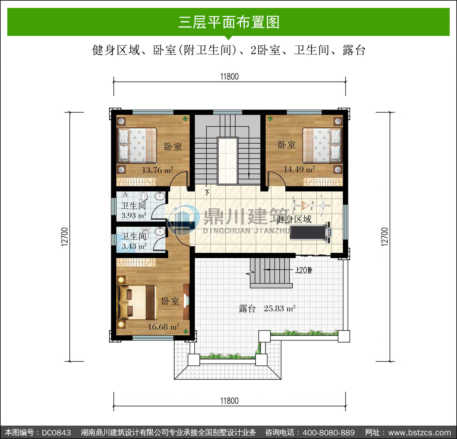 大氣的復式三層別墅施工圖紙及效果圖_新農村自建房設計,鼎川建