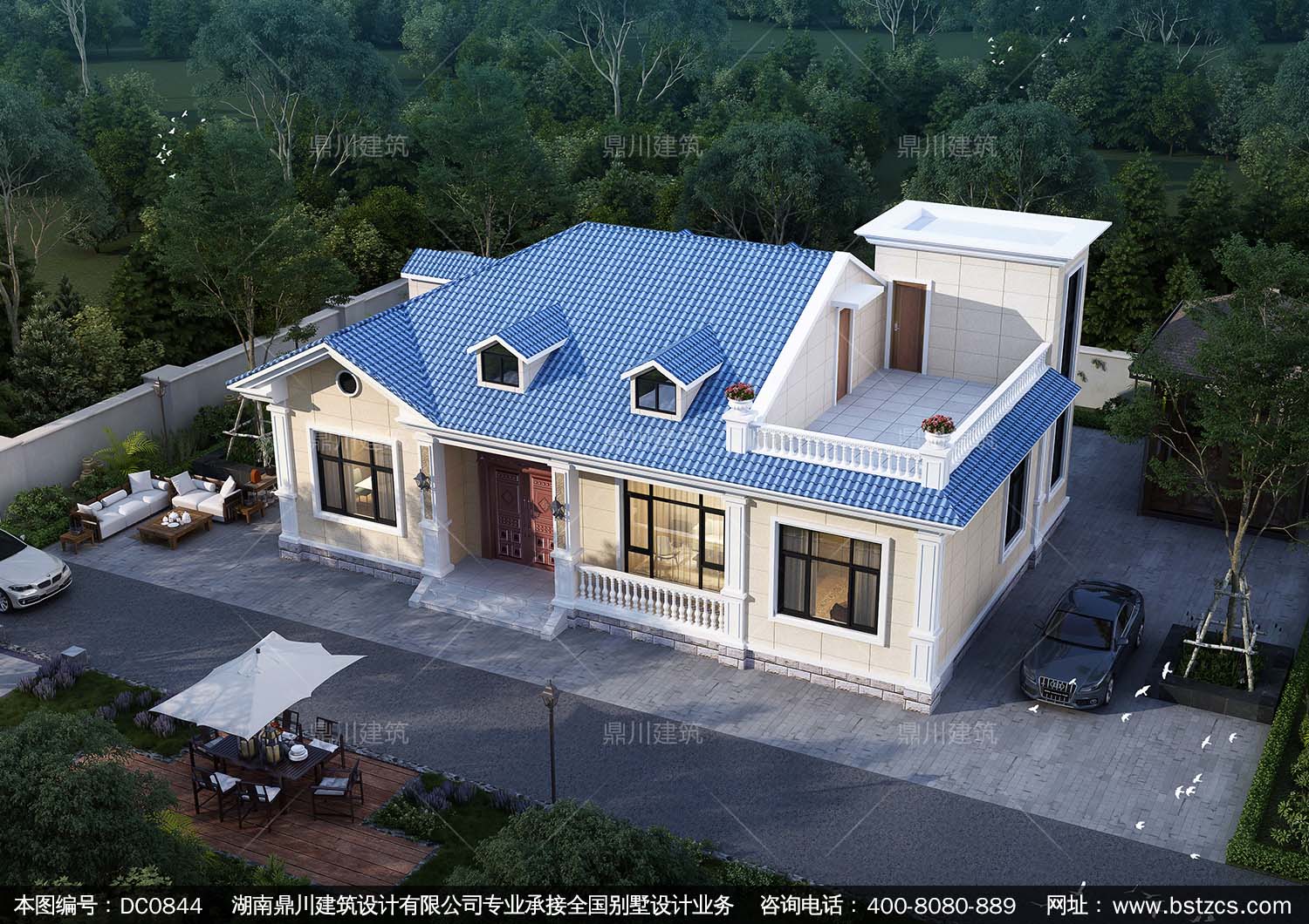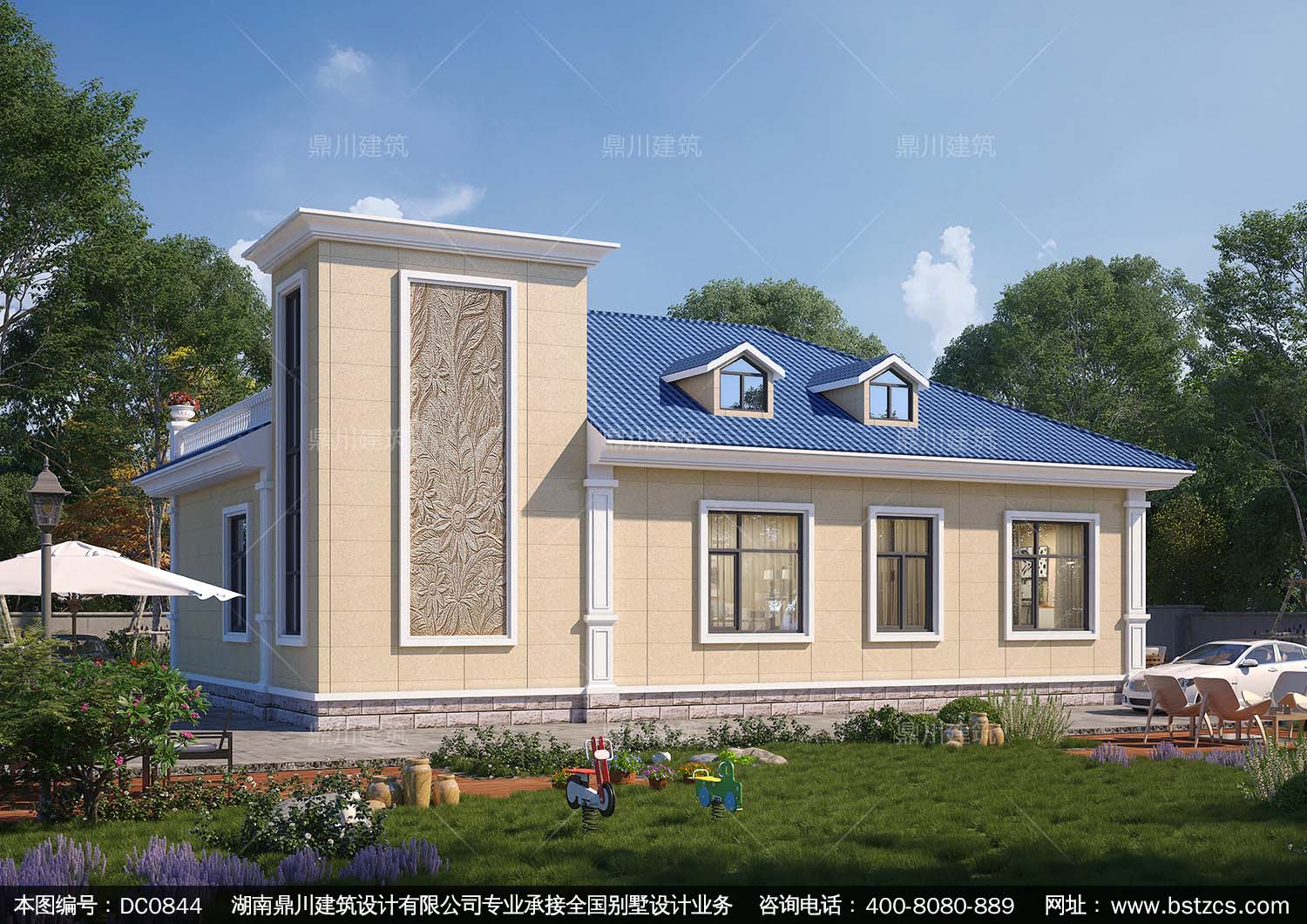 歐式一層實用小別墅施工圖紙及效果圖_農村平房設計,鼎川建筑