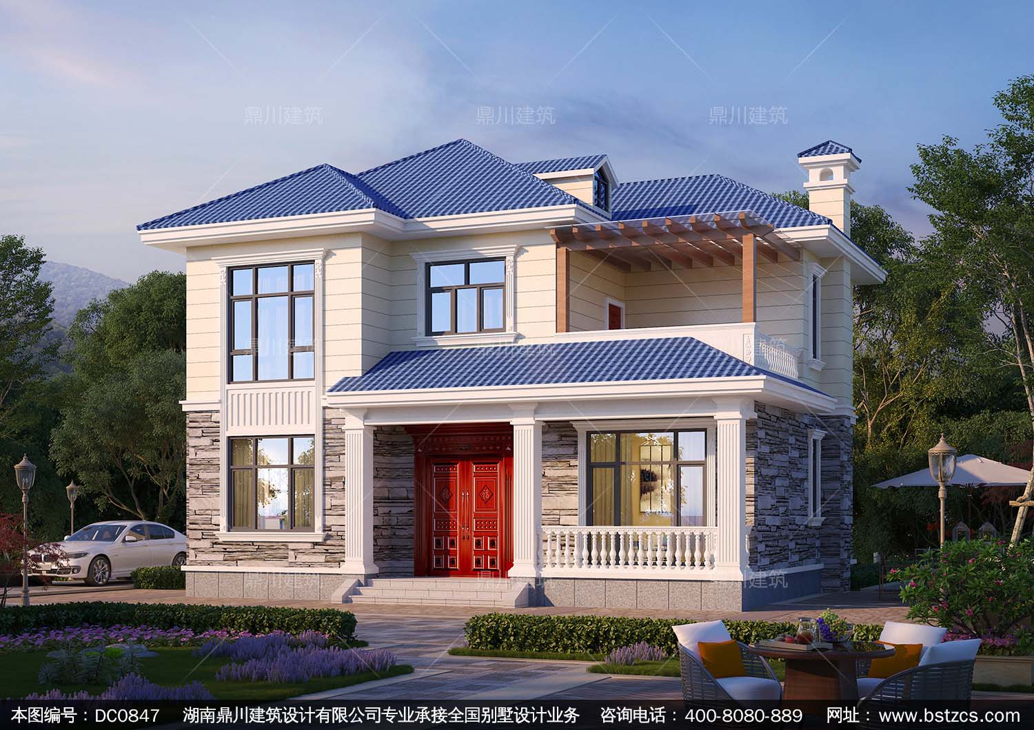 簡約二層帶露臺小別墅施工圖紙及效果圖_農(nóng)村自建房屋設(shè)計,鼎川建筑