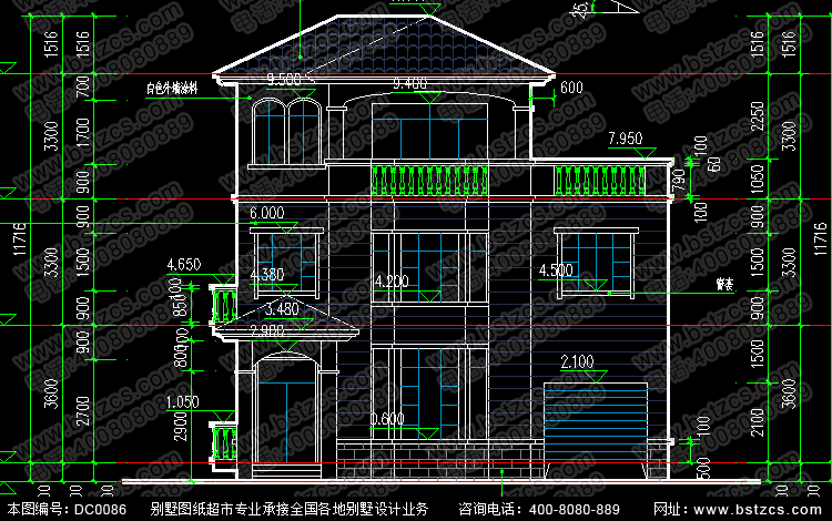 漂亮的三層復式歐式別墅圖紙效果圖施工圖_別墅圖紙超市,別墅設
