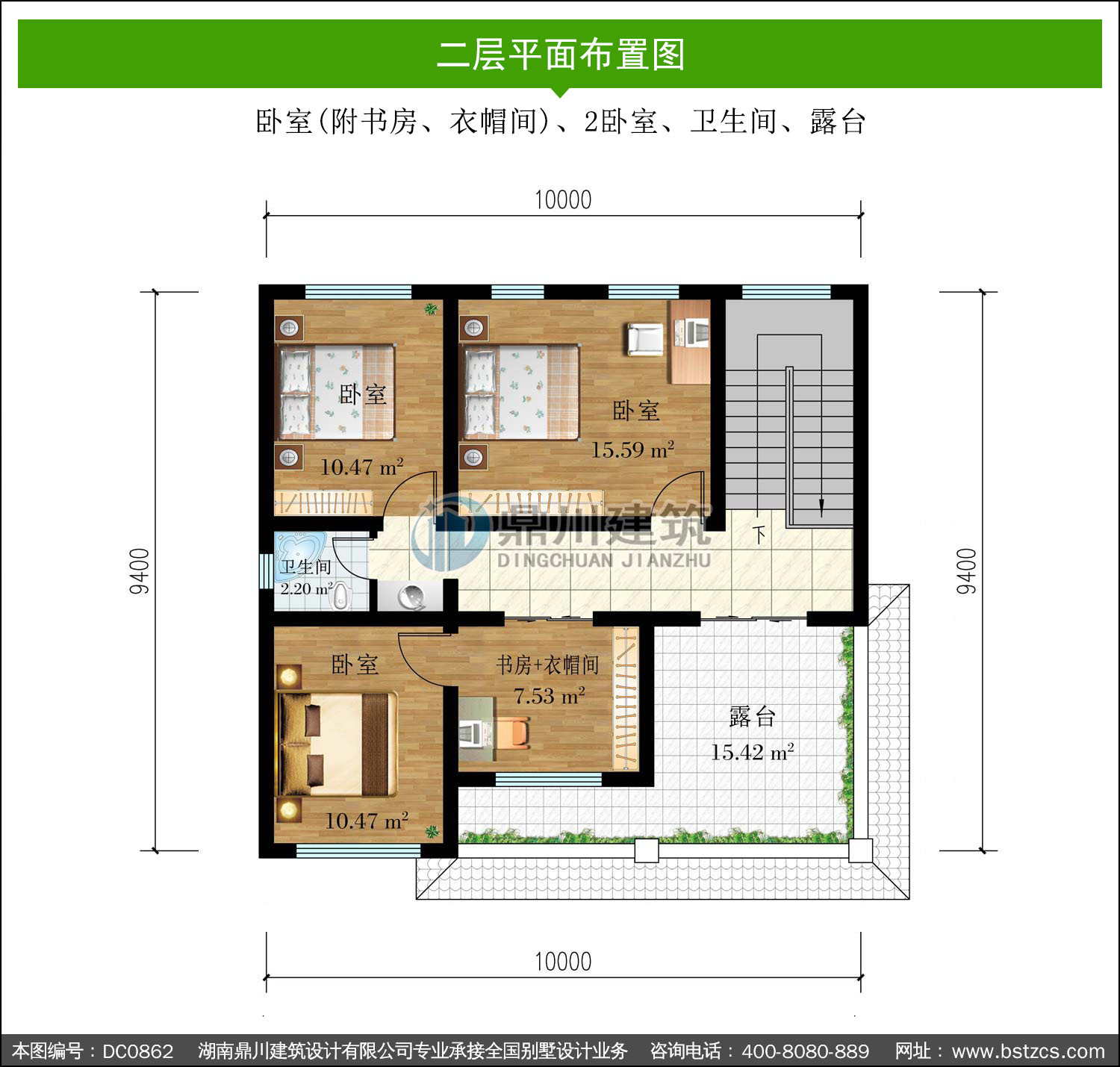 二層帶露臺實用別墅施工圖紙及效果圖_新農村自建房設計,鼎川建