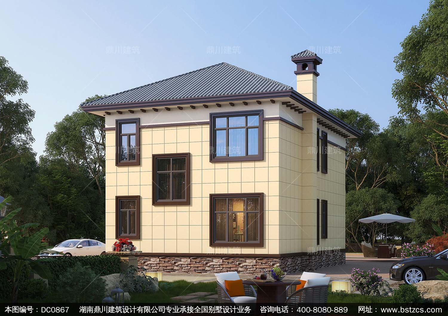 新中式二層帶露臺實用小別墅施工圖紙及效果圖_新農(nóng)村自建房設計,鼎川建筑
