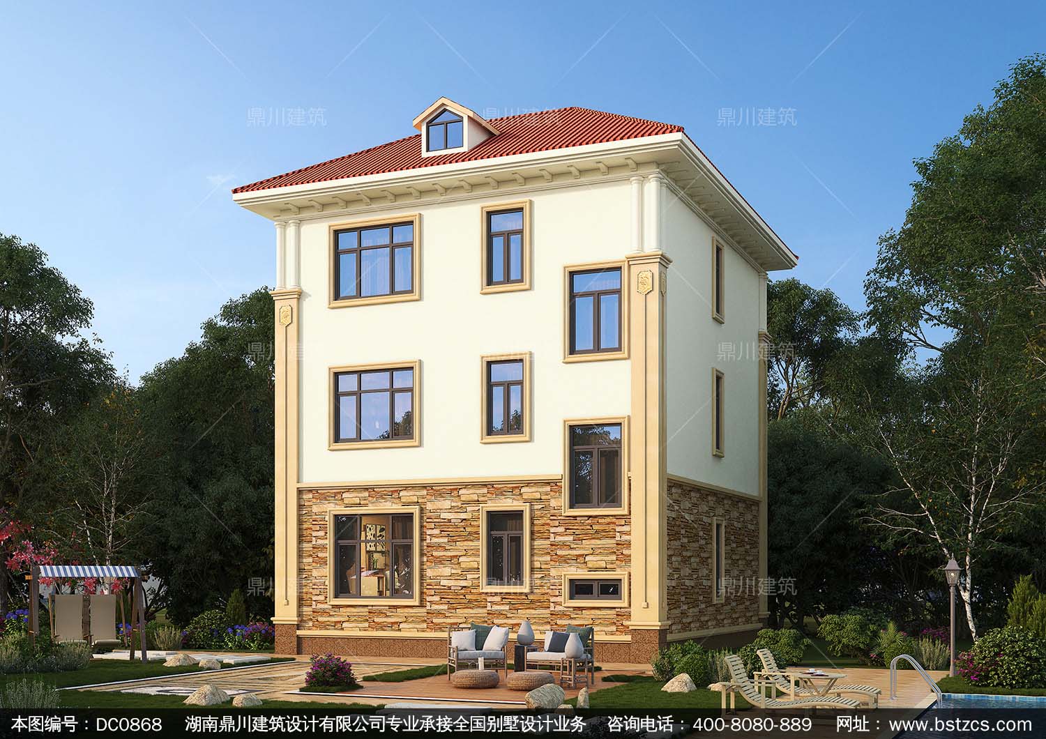 歐式三層帶露臺(tái)小戶型別墅施工圖紙及效果圖_農(nóng)村自建房設(shè)計(jì)圖,鼎川建筑