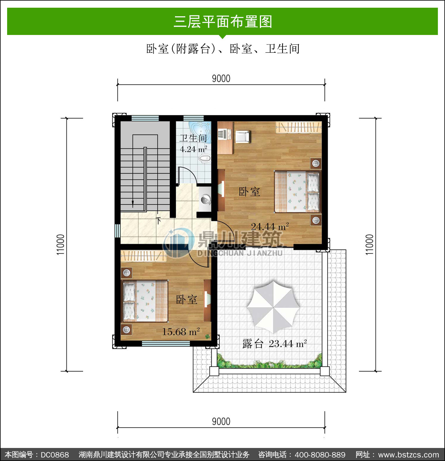 | 三 層: | 臥室(附露臺(tái))、臥室、衛(wèi)生間 | |||