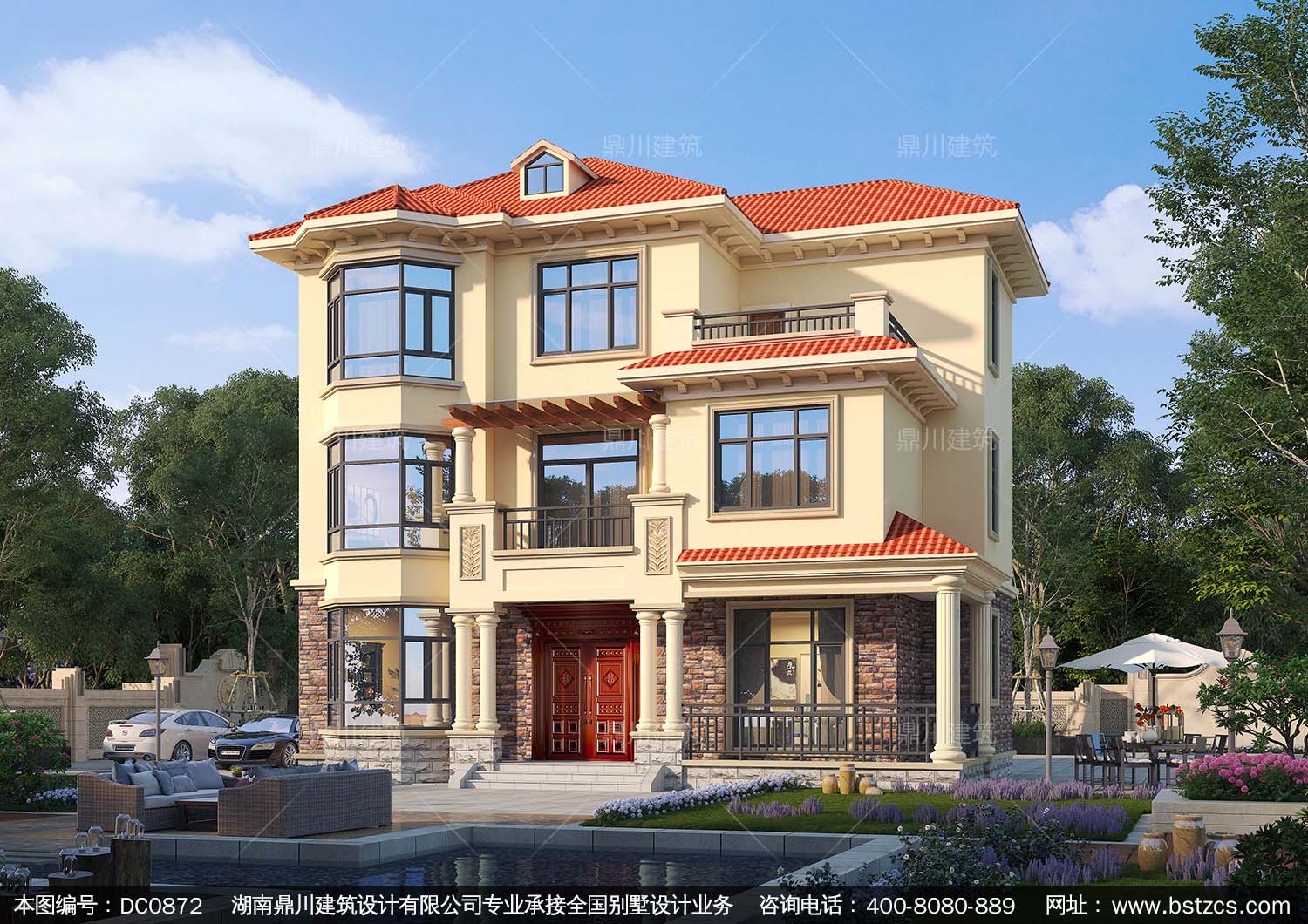 新農(nóng)村三層帶露臺(tái)別墅施工圖紙及外觀效果圖_鄉(xiāng)村自建房設(shè)計(jì),鼎川建筑