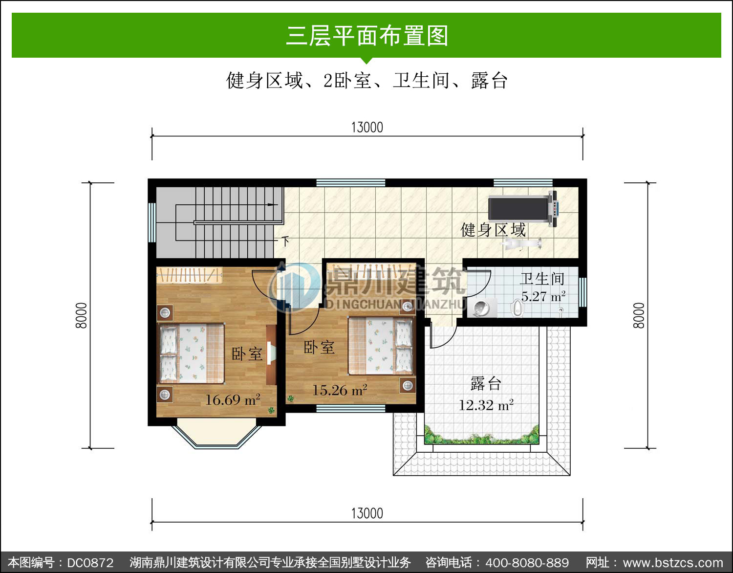 | 三 層: | 健身區(qū)域、2臥室、衛(wèi)生間、露臺(tái) | |||