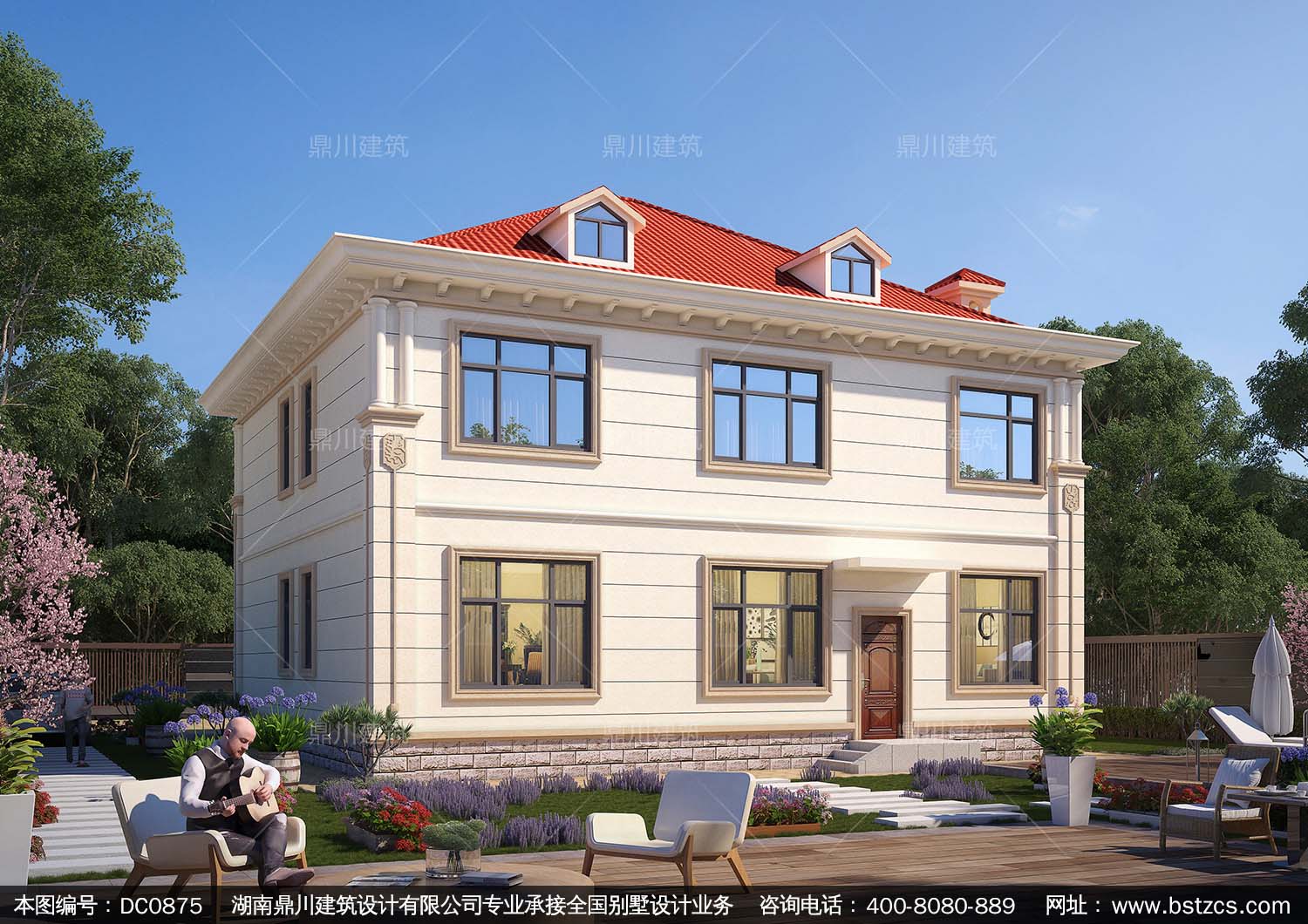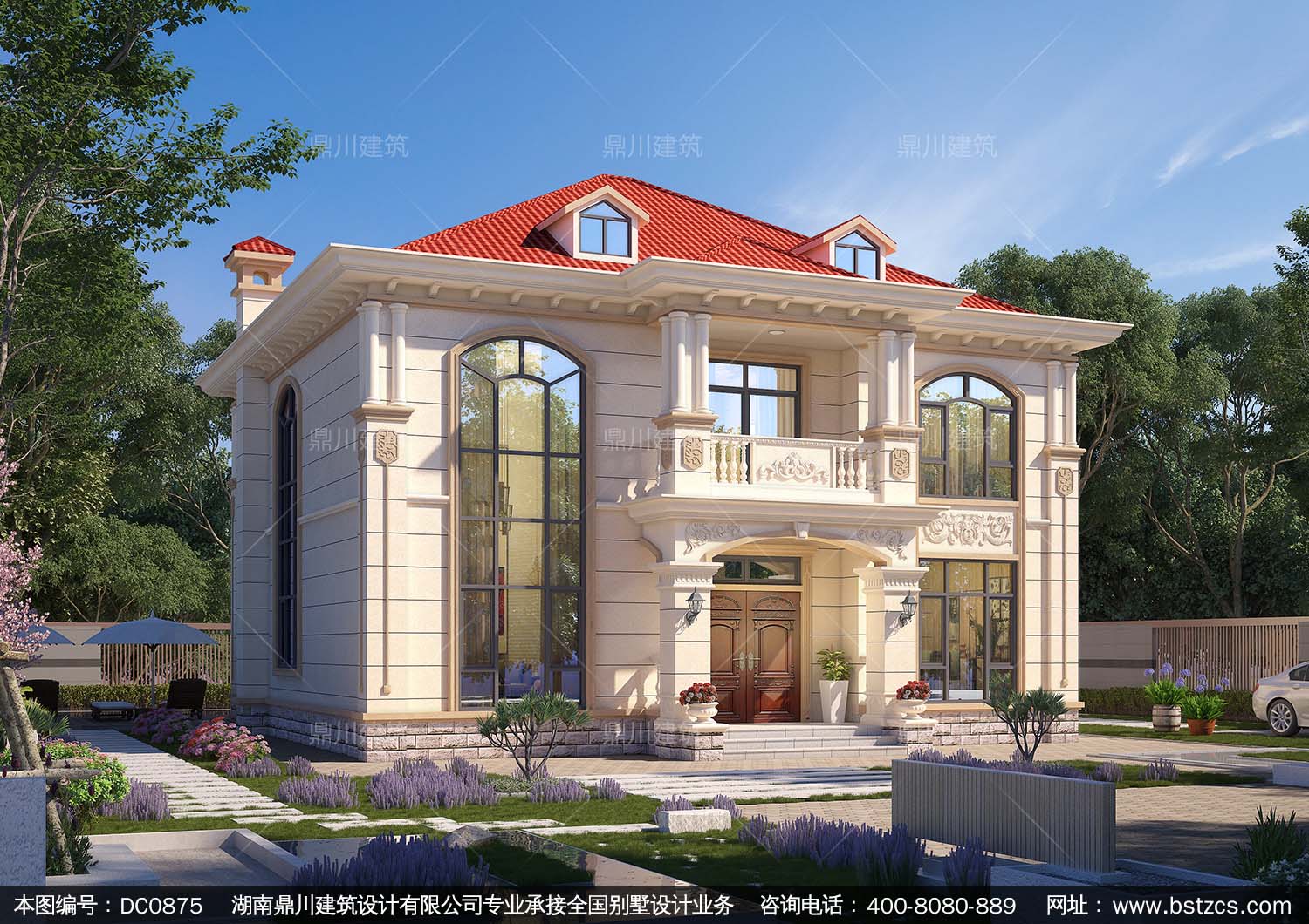 歐式二層帶陽臺別墅效果圖及施工圖紙_農村自建房設計,鼎川建筑