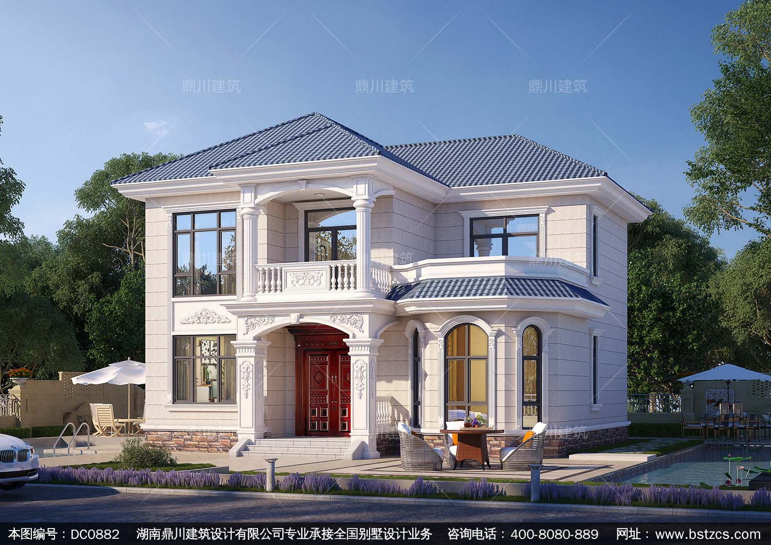 二層歐式帶露臺小別墅圖紙及外觀效果圖_農村自建房設計,鼎川建筑