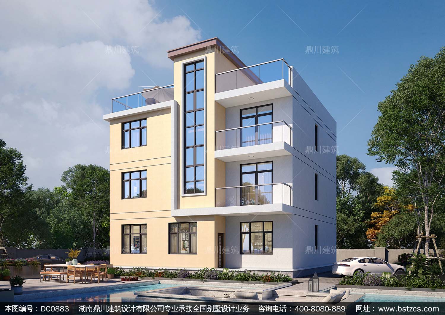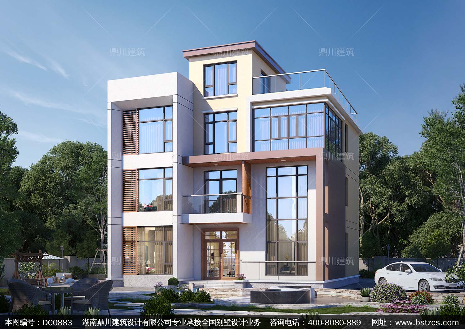 現代三層簡約別墅設計圖紙及效果圖_新農村自建別墅設計,鼎川建
