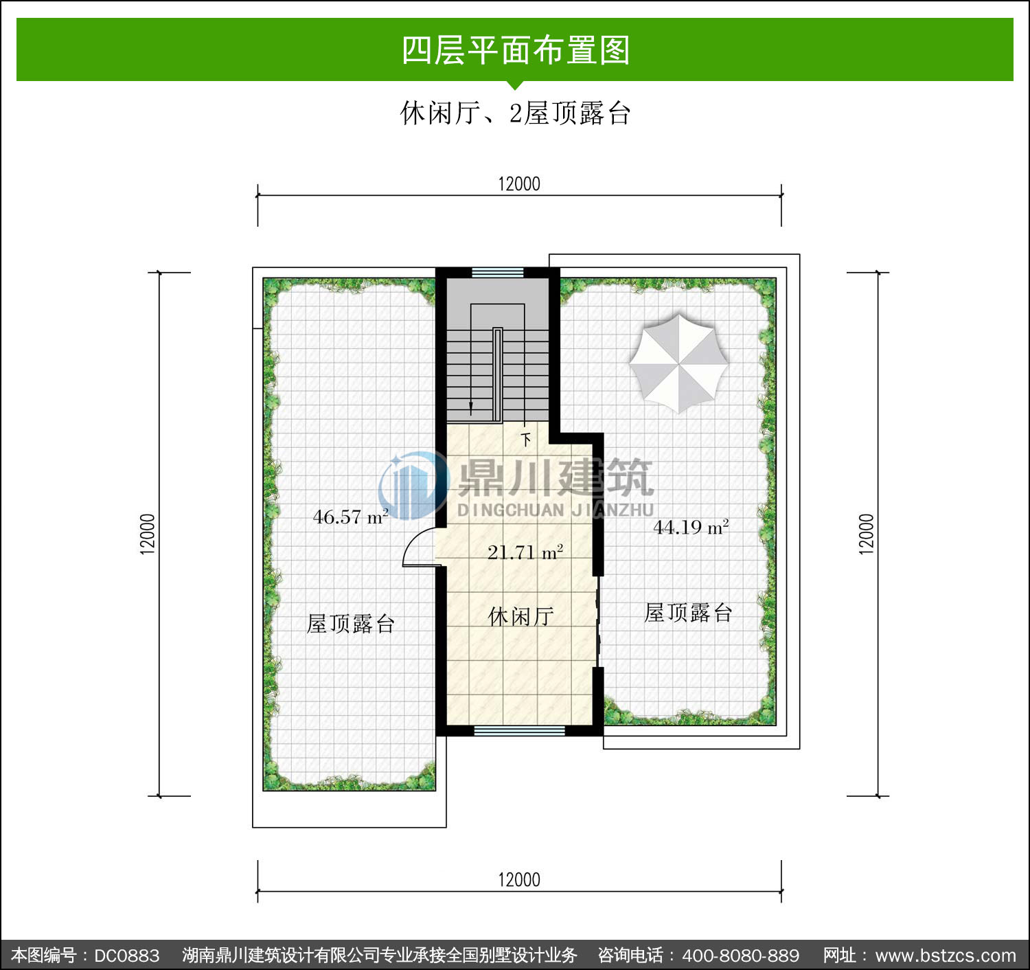 | 開間: 12米 | 進深: 12米 | 占地面積: 143.94平方米 | 建筑面積: 405.84平方米 |
