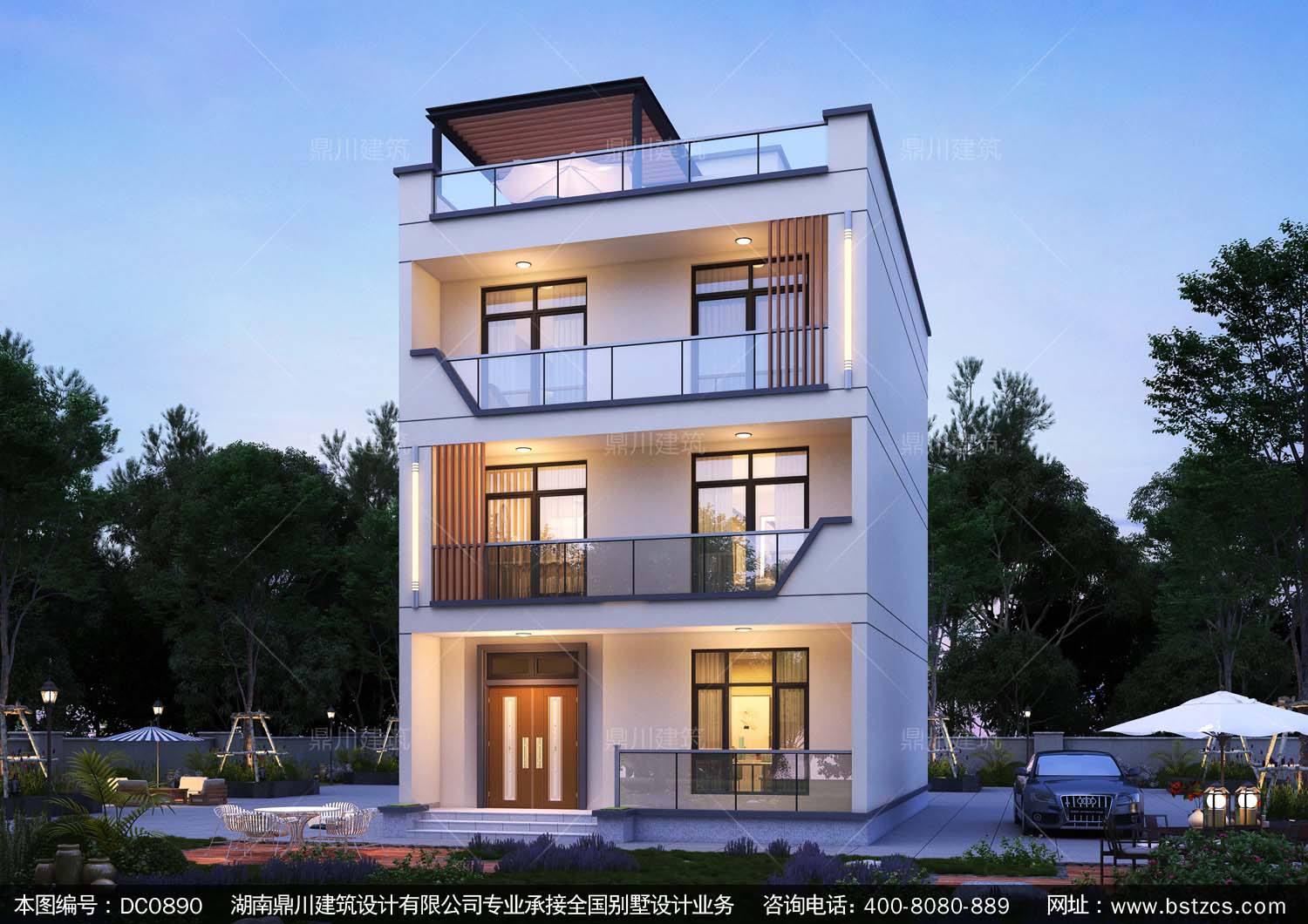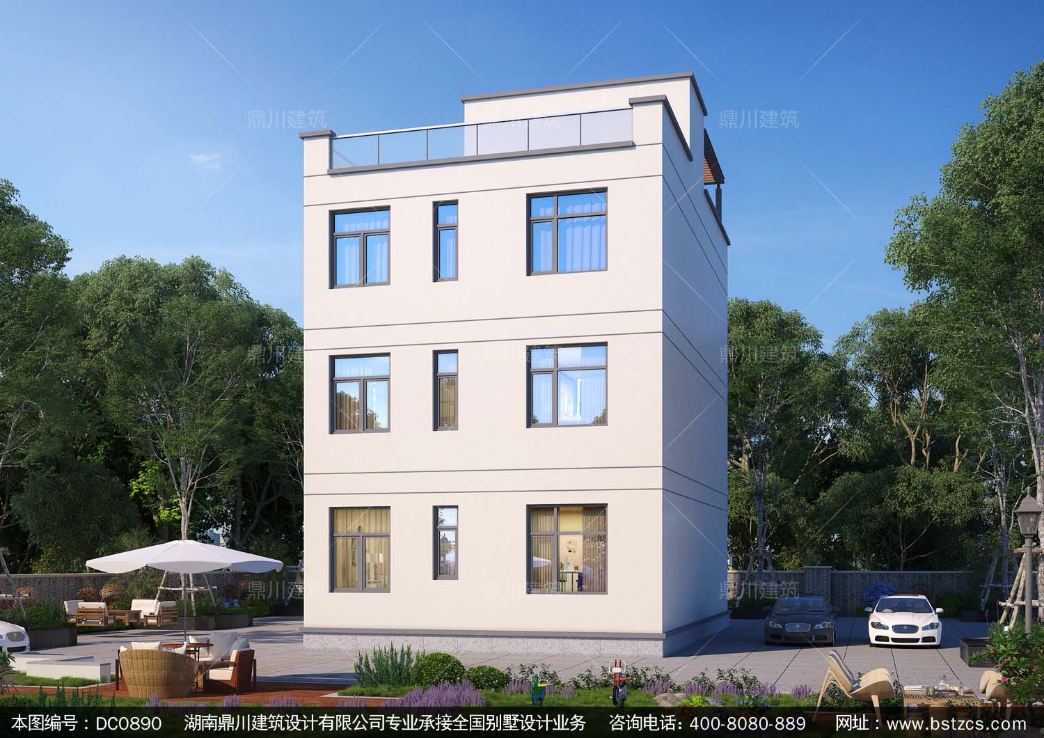 三層現(xiàn)代平屋頂別墅圖紙及效果圖_新農(nóng)村自建別墅設(shè)計(jì),鼎川建筑