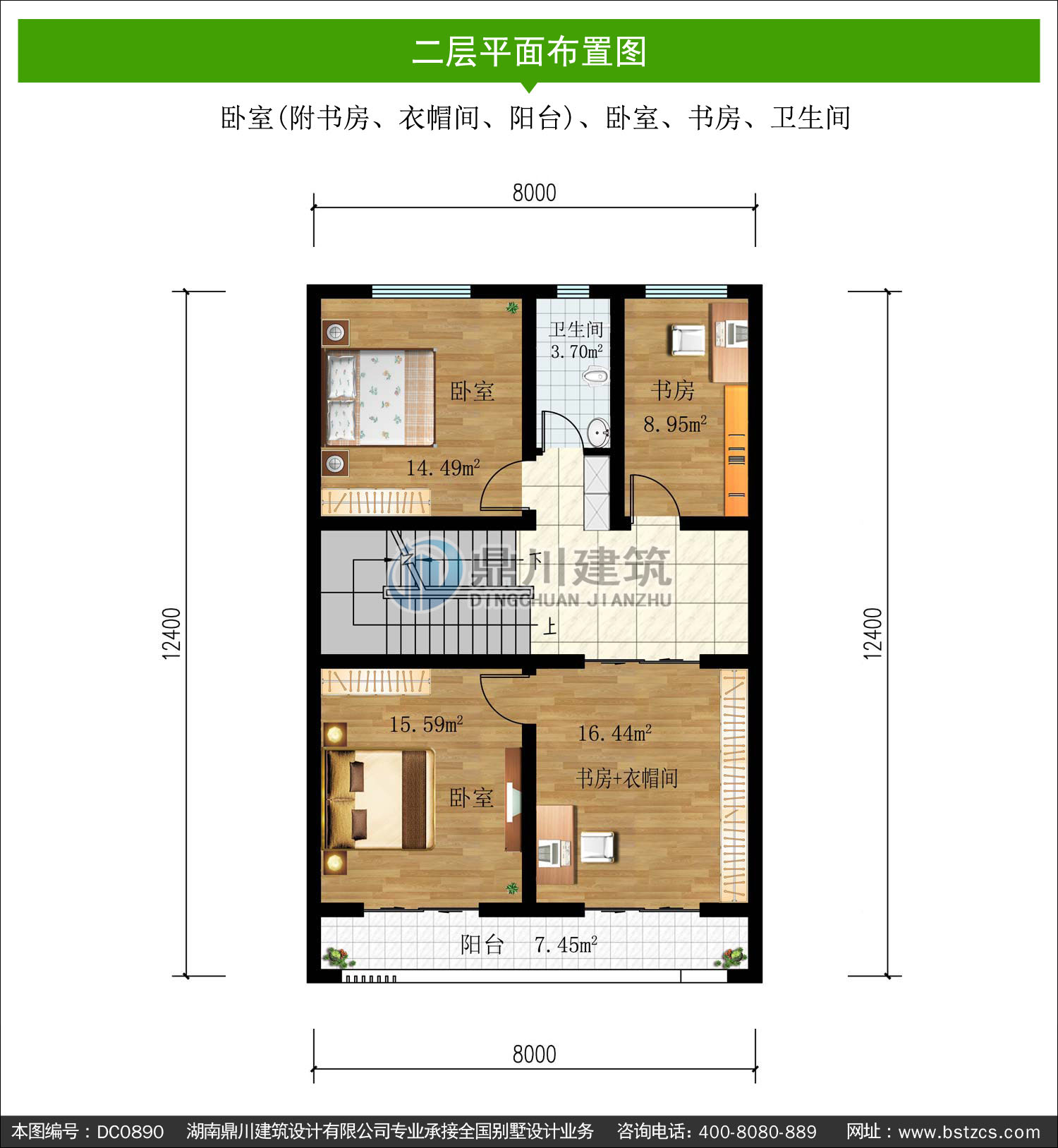 | 二 層: | 臥室(附書房、衣帽間、陽臺)、臥室、書房、衛(wèi)生間 | |||