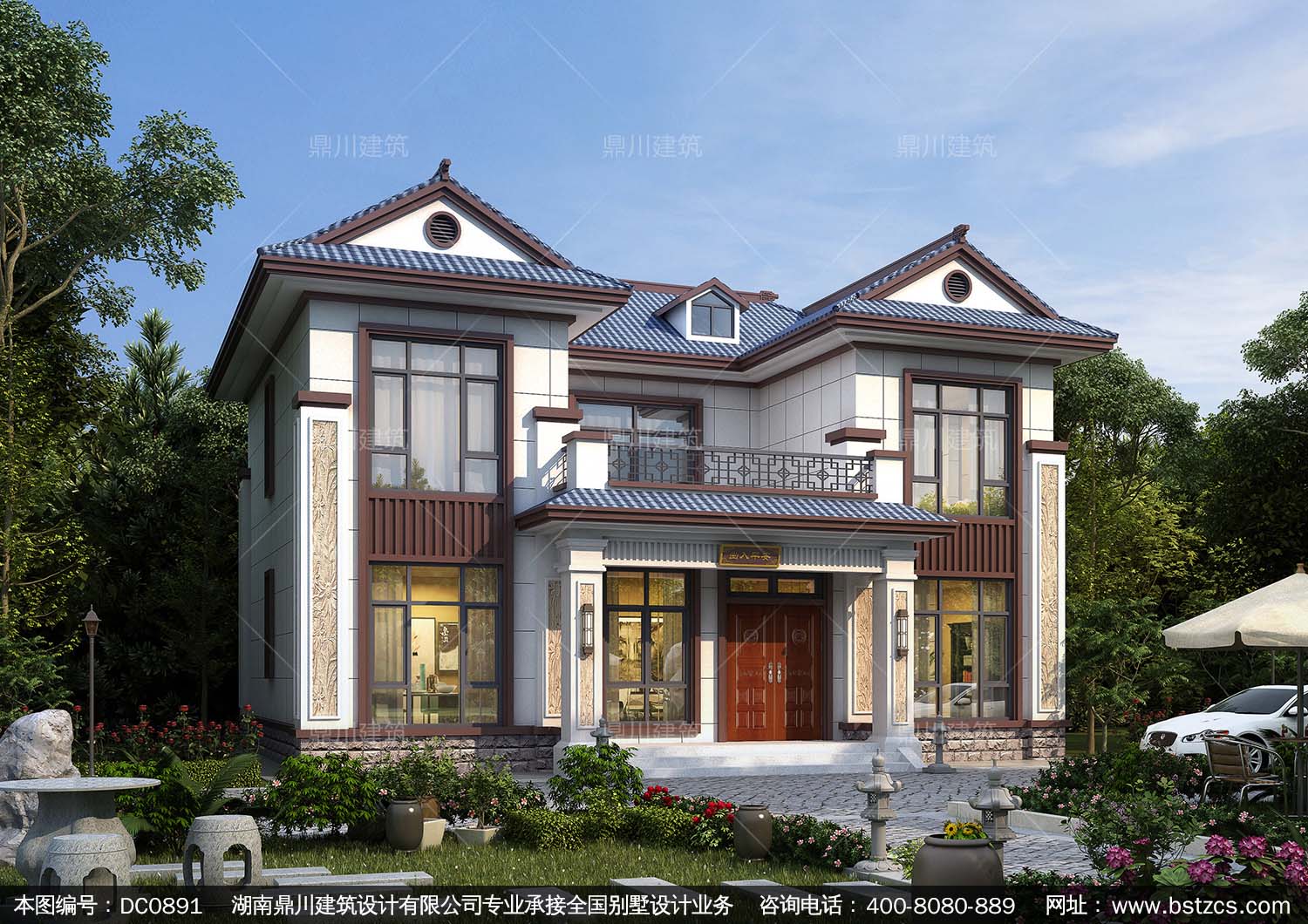 新中式帶露臺小別墅施工圖紙及效果圖_農村二層自建房設計,鼎川建筑