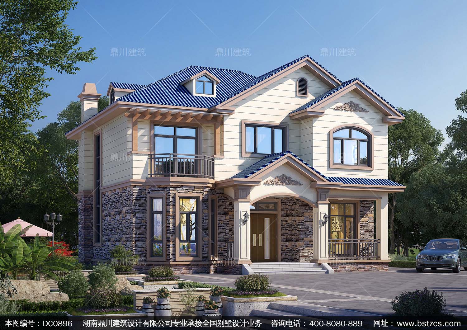 歐式二層帶露臺別墅施工圖紙及效果圖_農村自建房設計,鼎川建筑