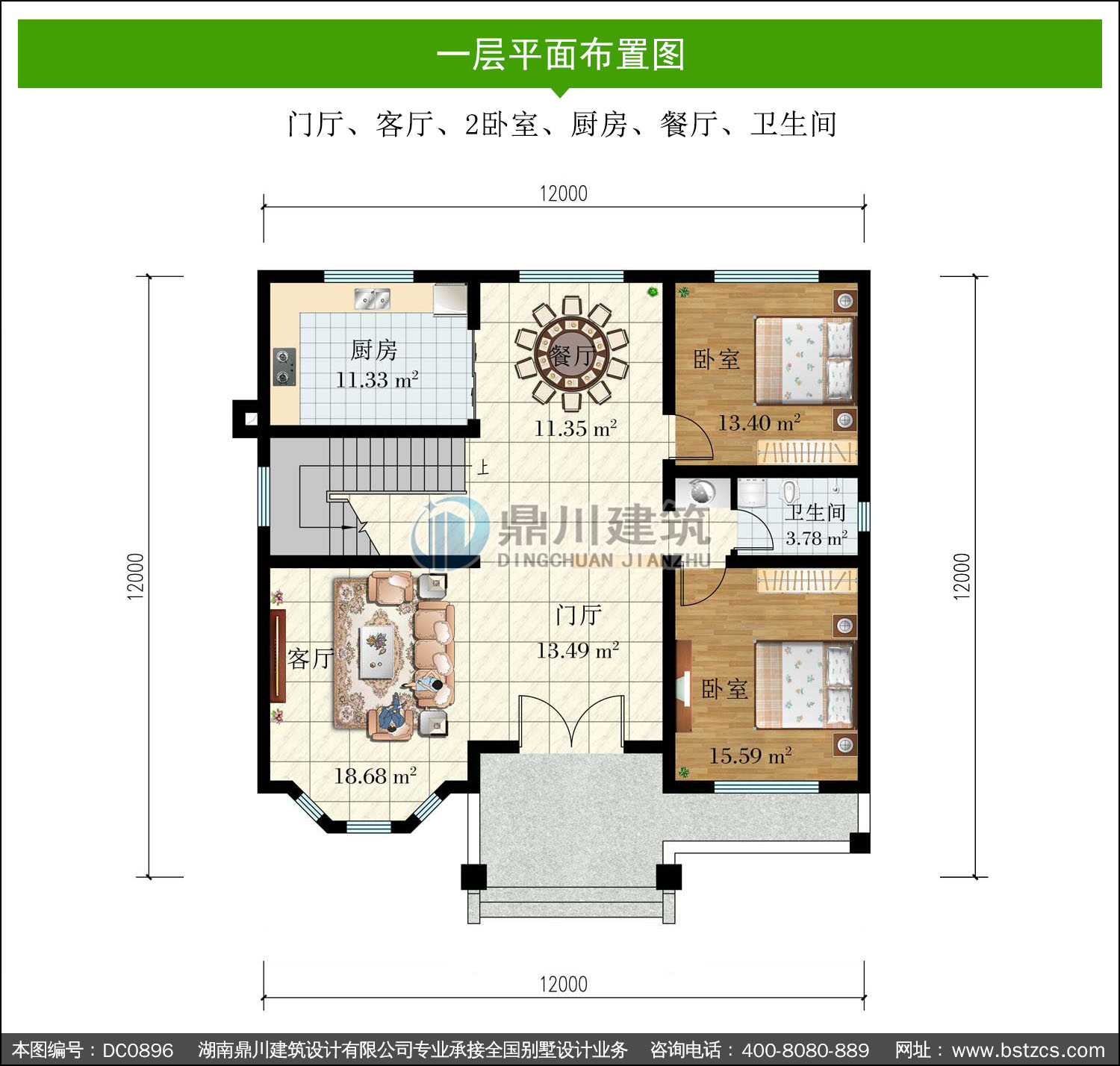 | 一 層: | 門廳、客廳、2臥室、廚房、餐廳、衛生間 | |||