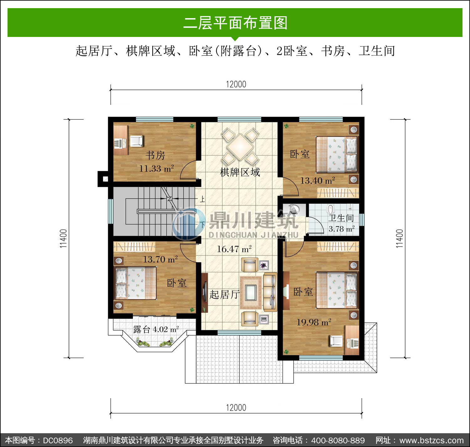 | 二 層: | 起居廳、棋牌區域、臥室(附露臺)、2臥室、書房、衛生間 | |||