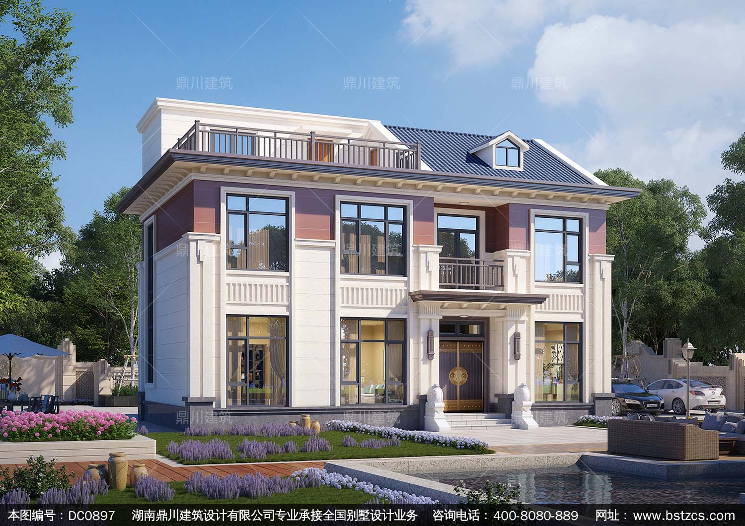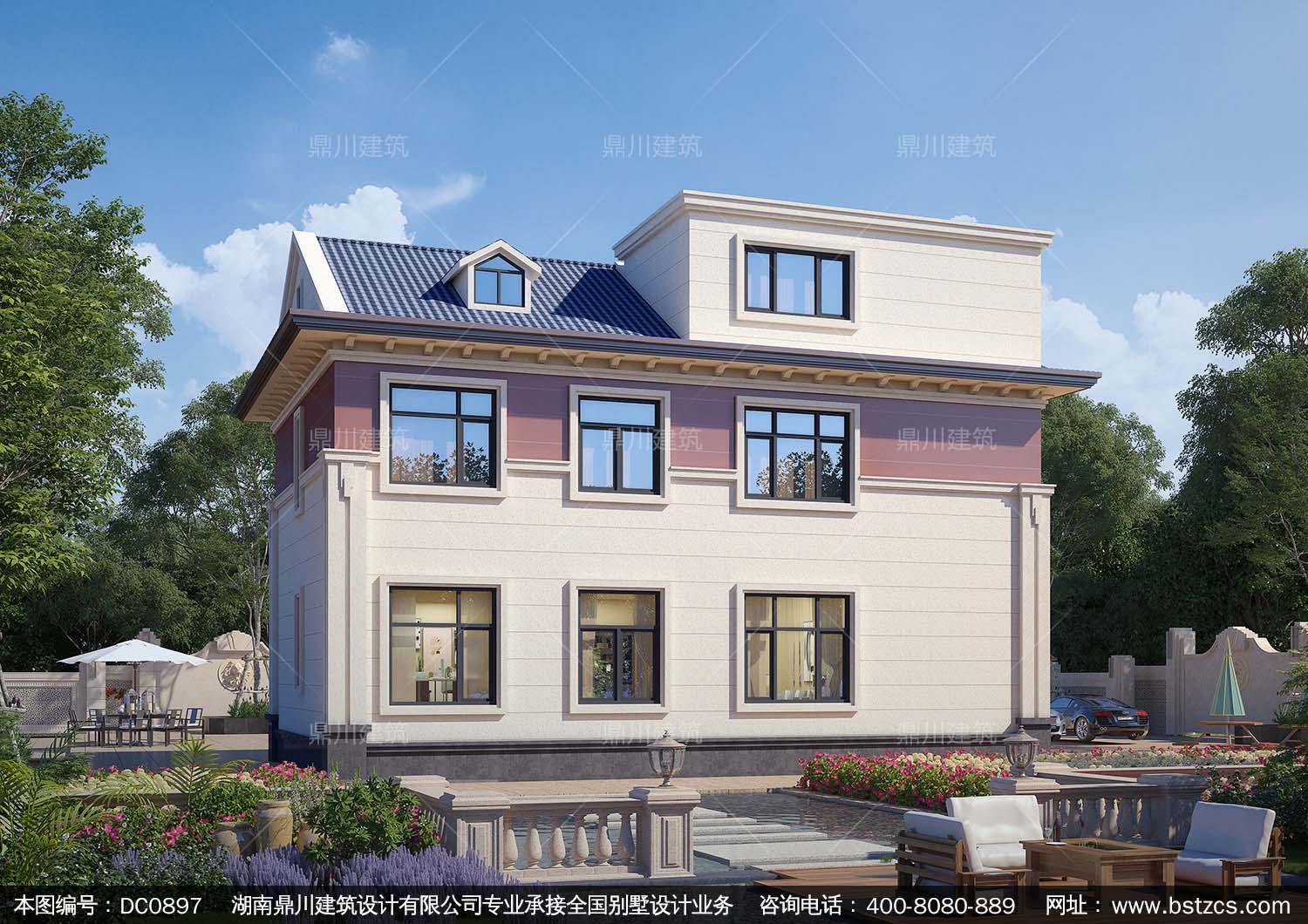 新農村二層帶半露臺別墅施工圖紙及效果圖_鄉村自建房設計,鼎川建筑