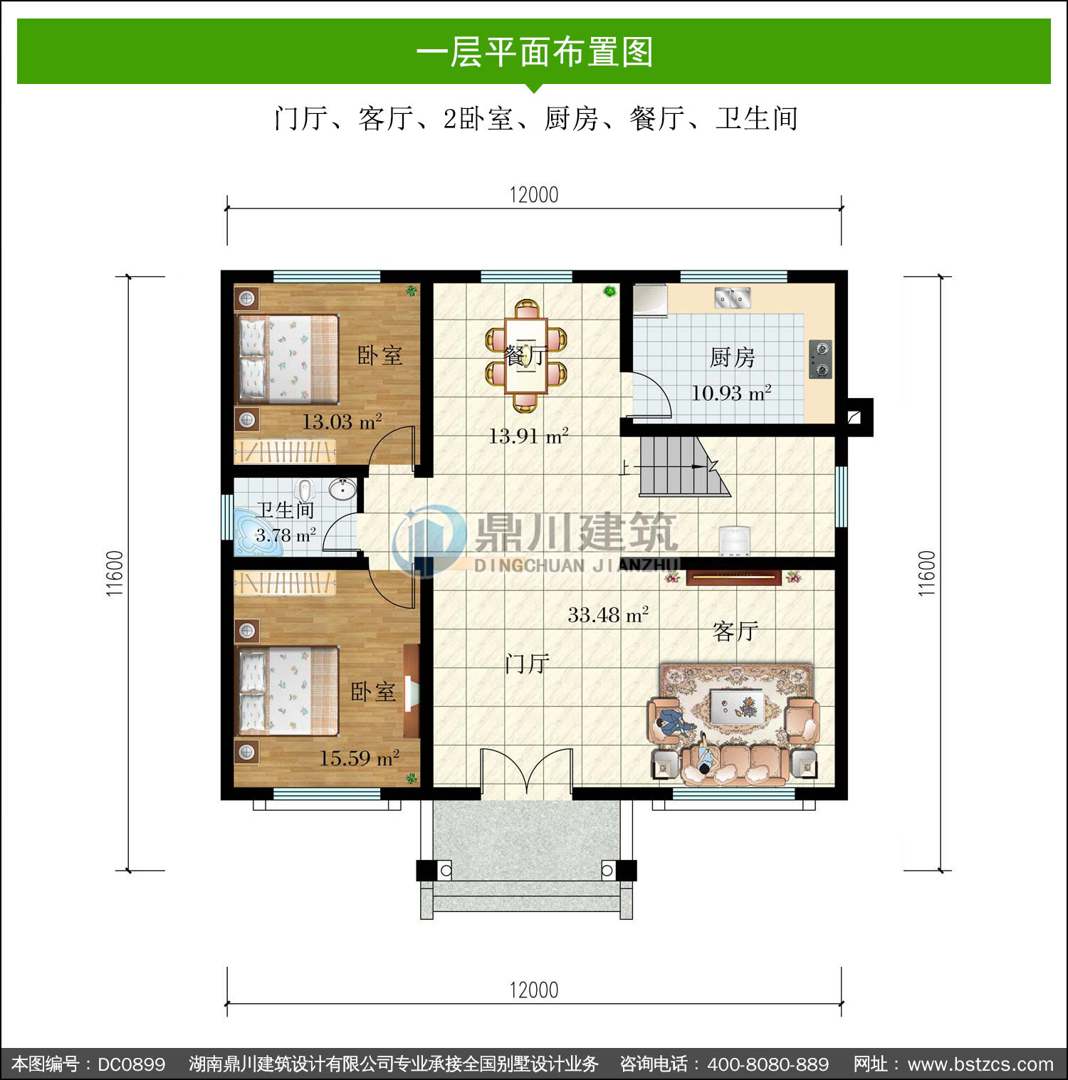 | 編號: DC0899 | 層數: 二層 | 結構形式: 磚混結構 | 主體造價: 29-33萬 |