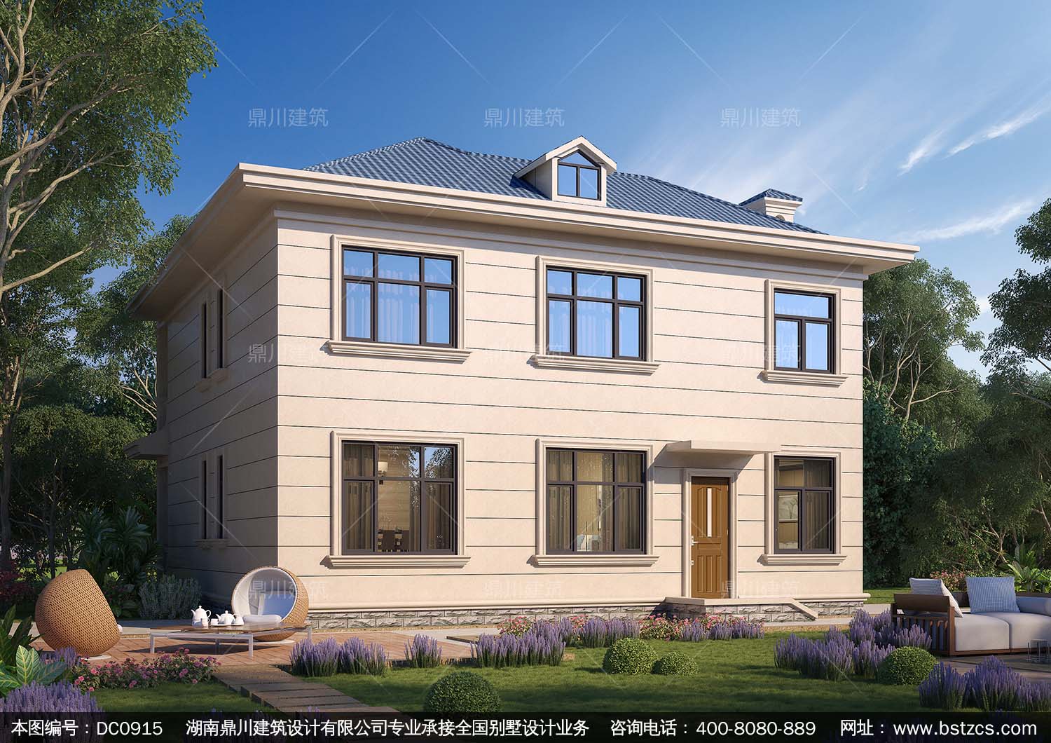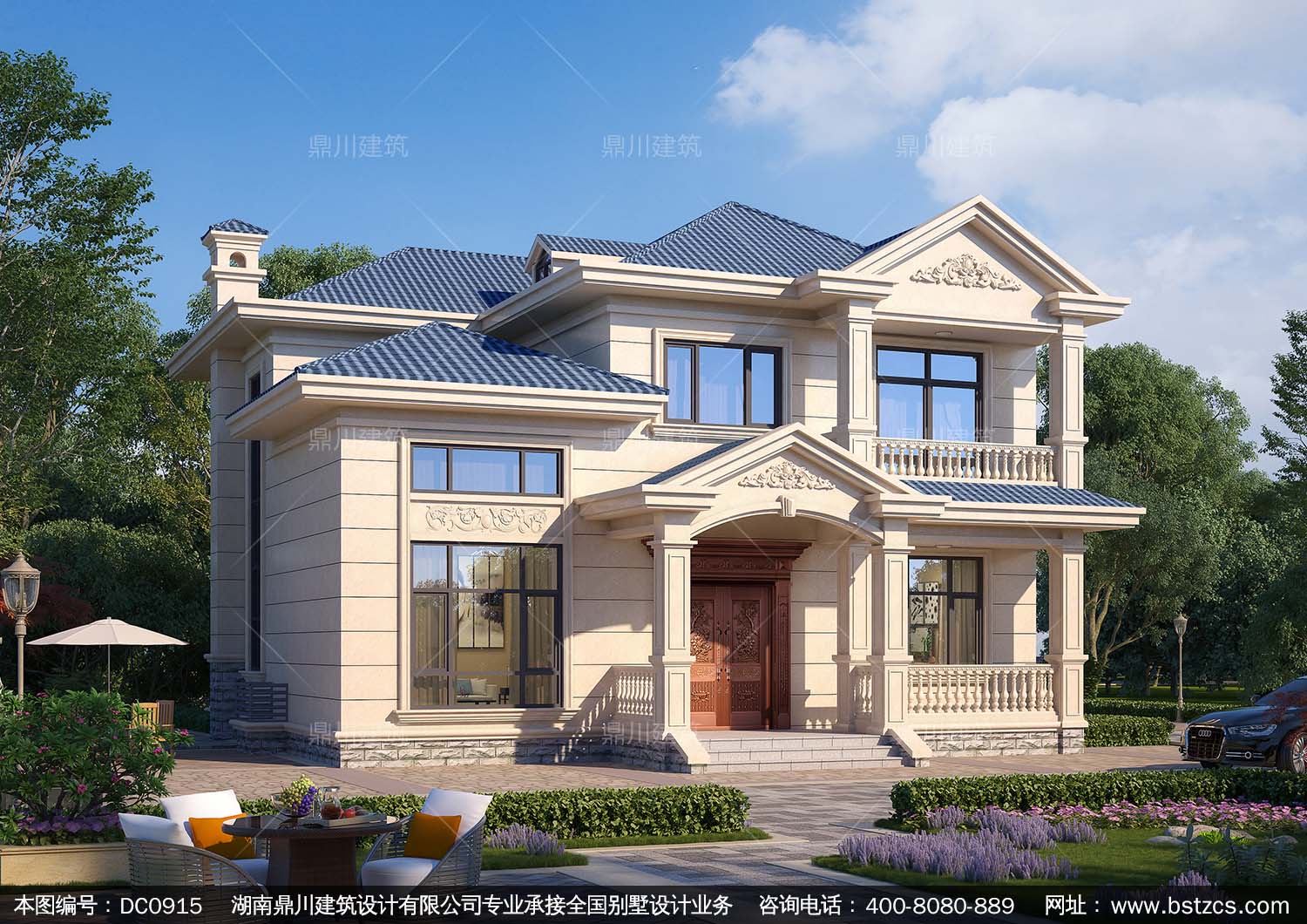 歐式二層帶露臺別墅施工圖紙及效果圖_農村自建房設計,鼎川建筑