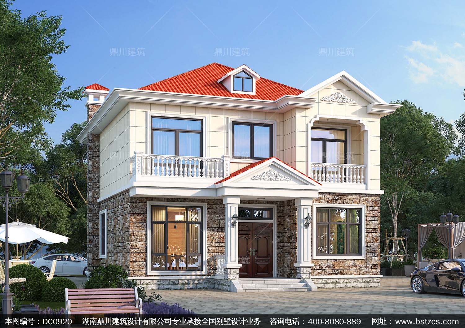 農(nóng)村二層帶陽臺(tái)小別墅效果圖及施工圖紙_鄉(xiāng)村自建房設(shè)計(jì),鼎川建筑