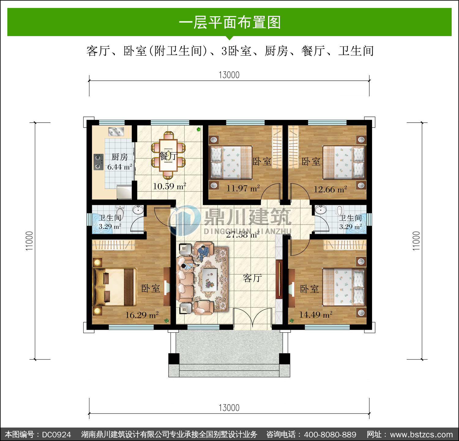 | 編號: DC0924 | 層數: 一層 | 結構形式: 磚混結構 | 主體造價: 18-22萬 |