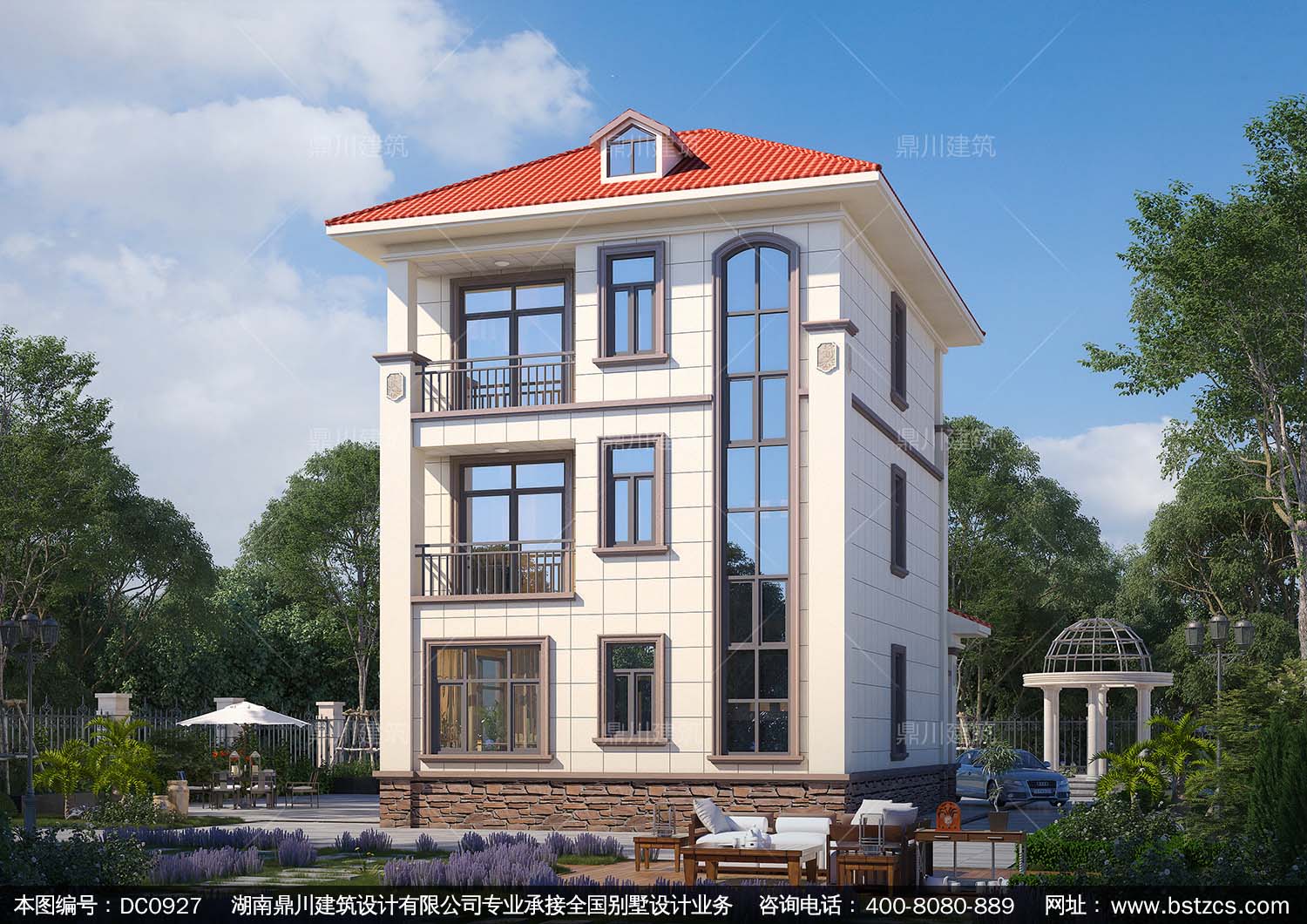 三層歐式小戶型農村別墅效果圖及施工圖_鄉村自建房設計,鼎川建