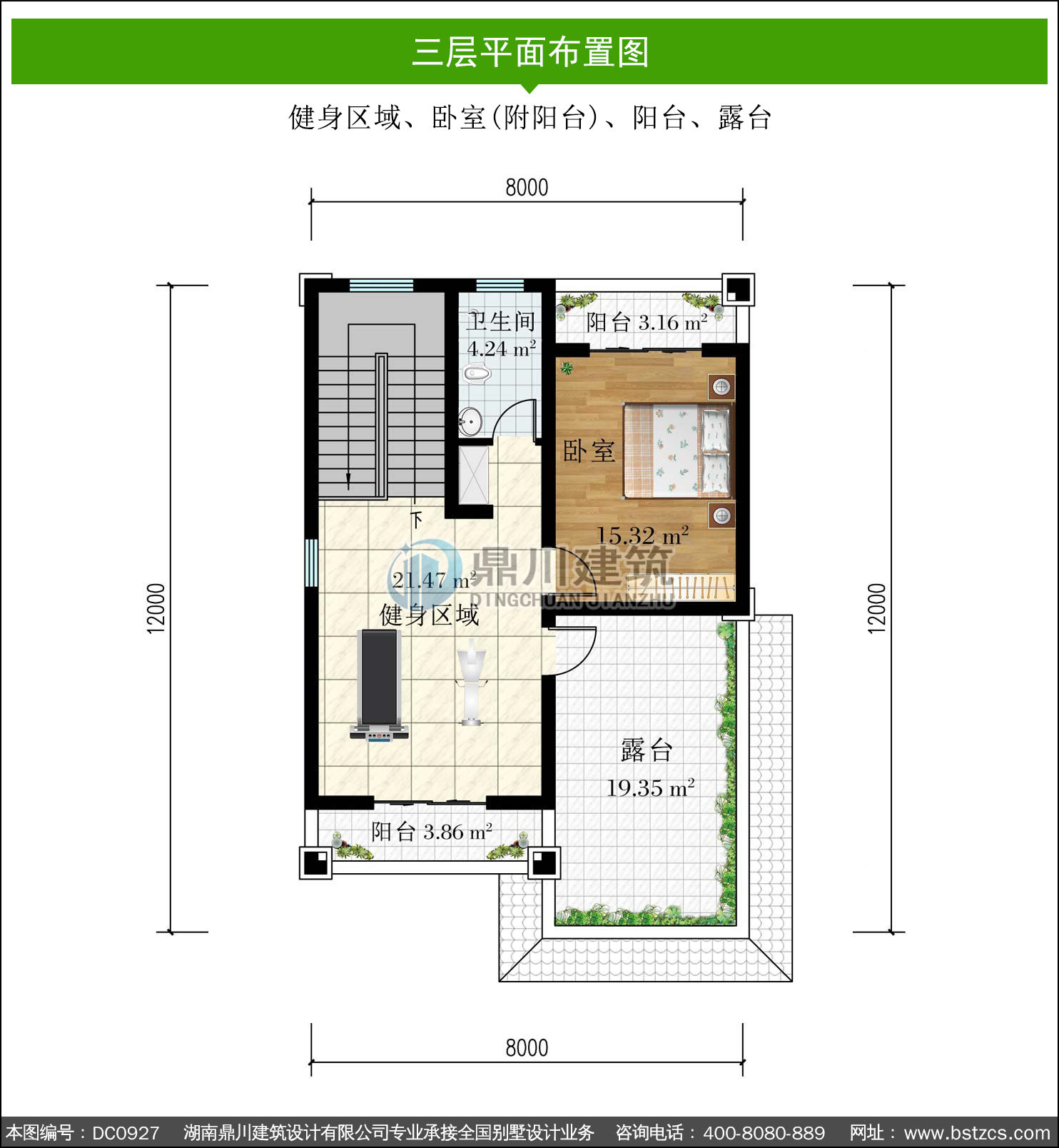 | 三 層: | 健身區域、臥室(附陽臺)、陽臺、露臺 | |||