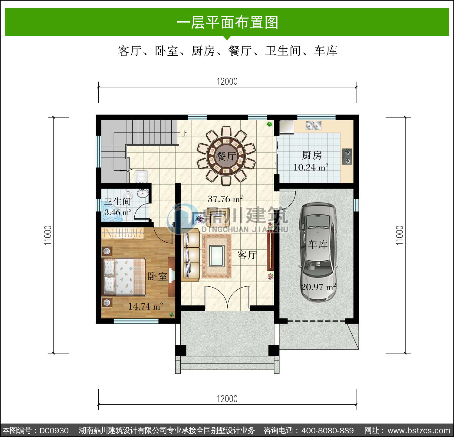 | 一 層: | 客廳、臥室、廚房、餐廳、衛生間、車庫 | |||