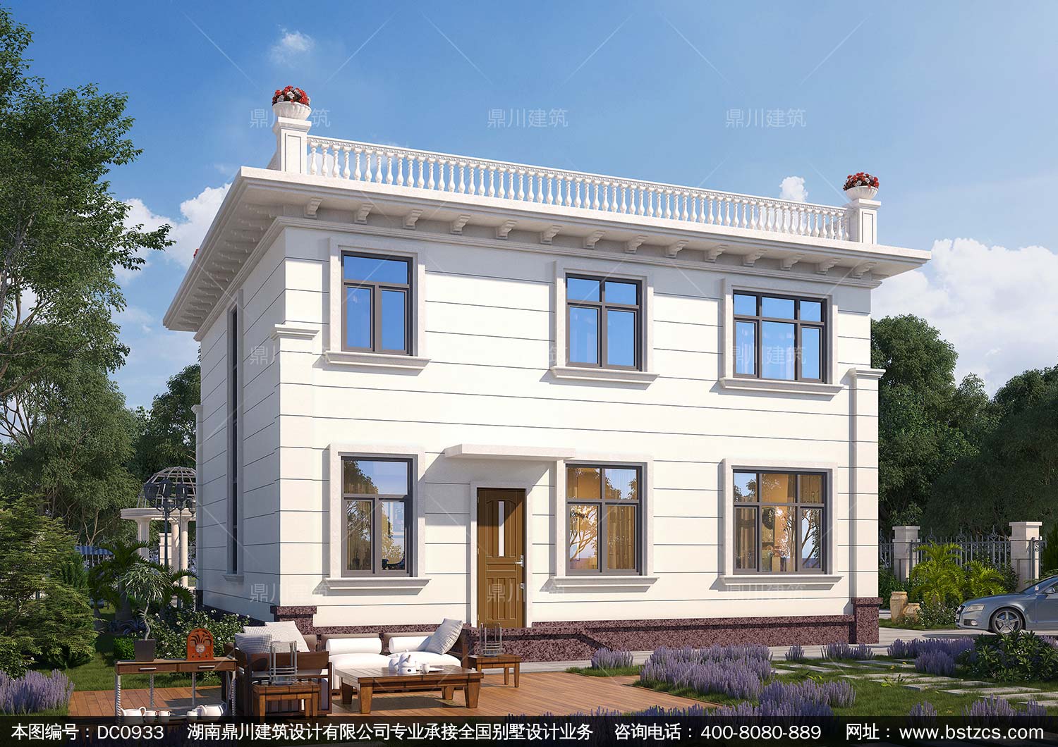 歐式二層平屋頂別墅設計效果圖及施工圖紙_農村自建房設計,鼎川建筑