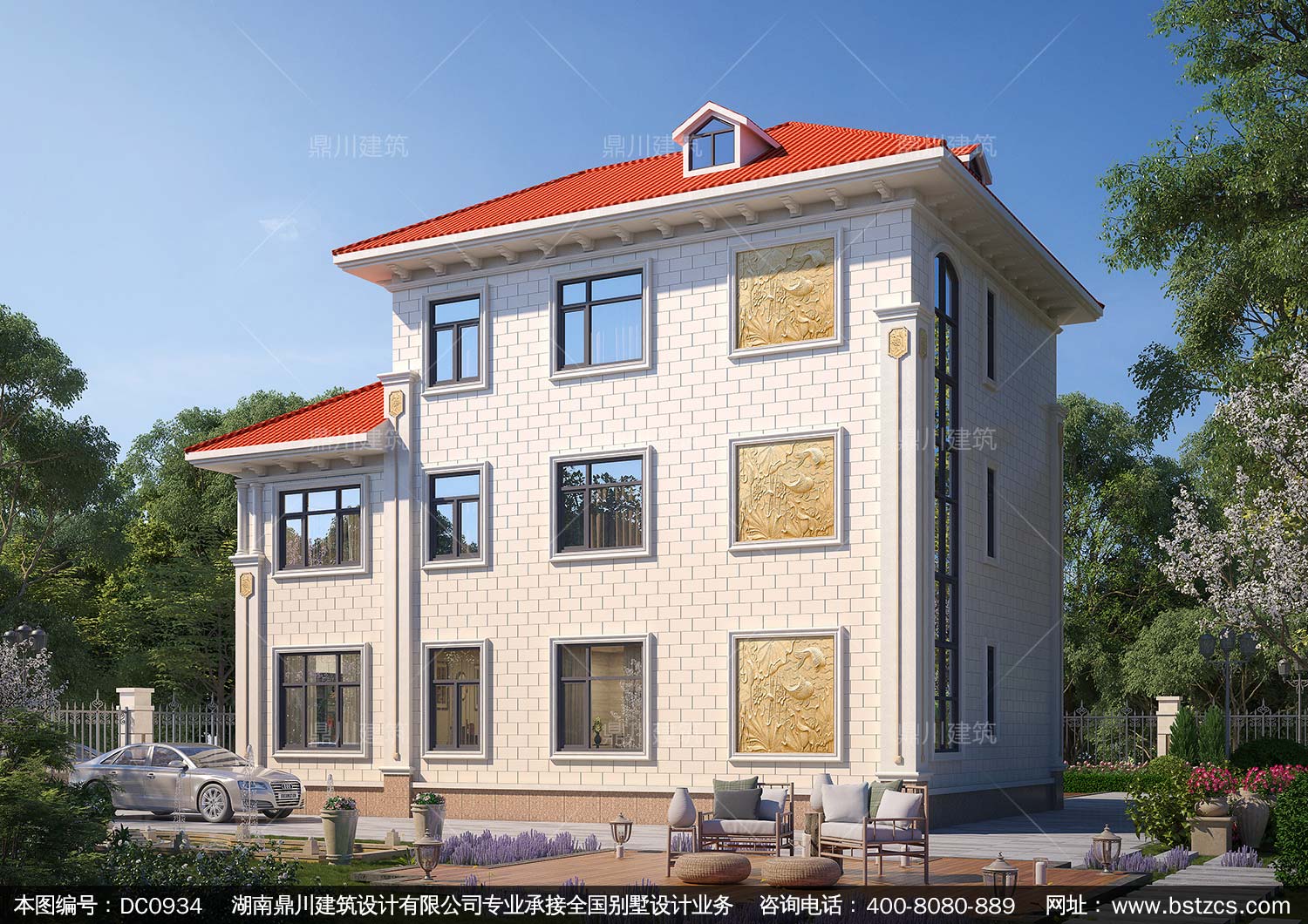 歐式三層帶露臺別墅設計施工圖紙及效果圖_新農(nóng)村自建房設計,鼎川建筑