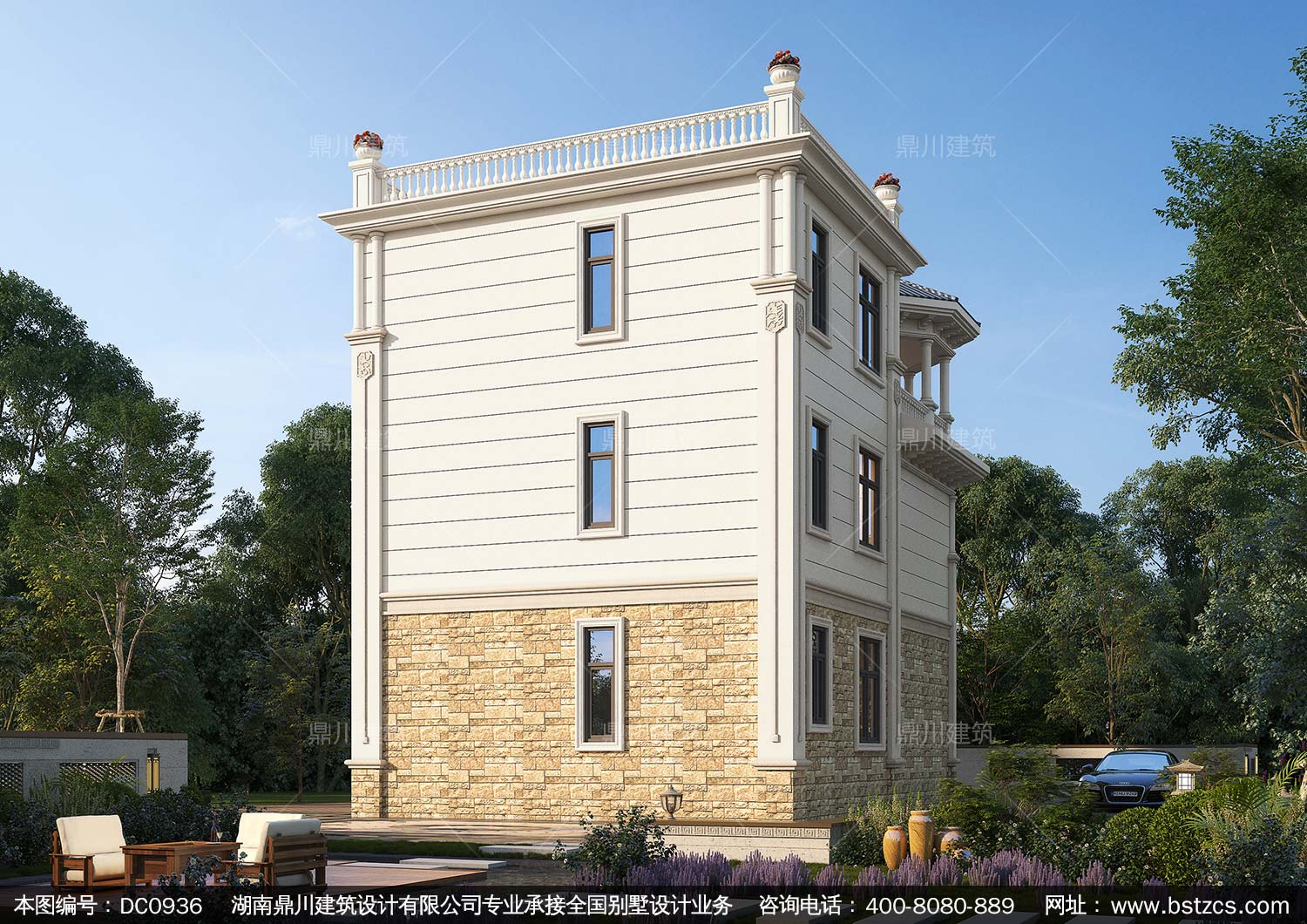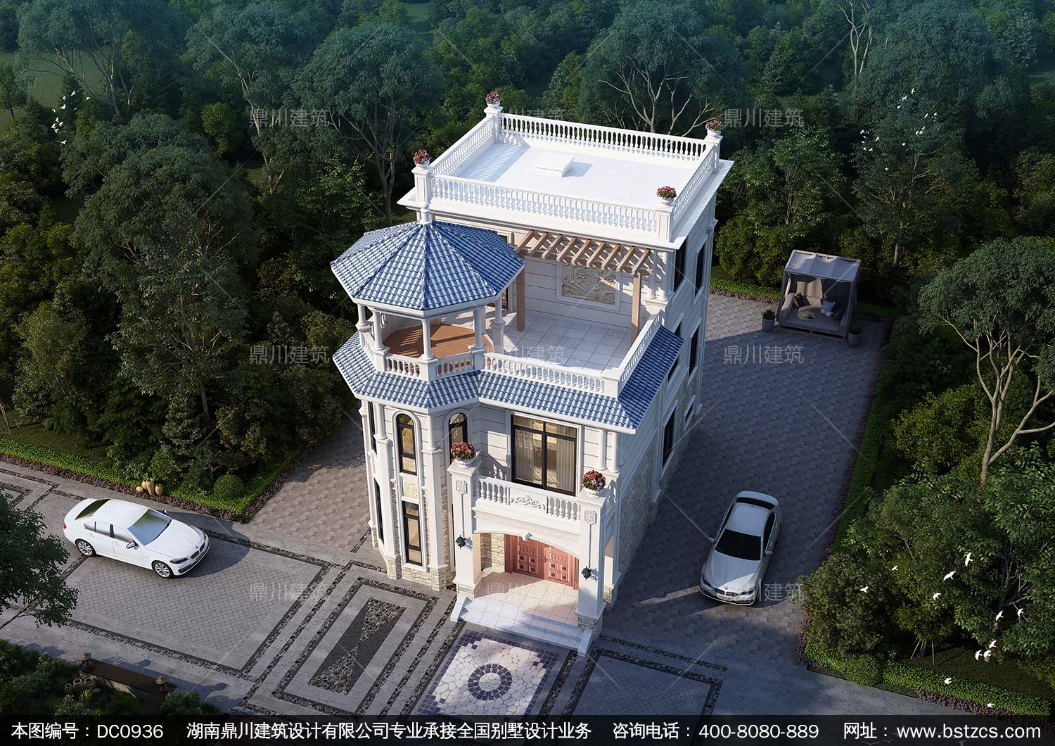 歐式三層帶涼亭實(shí)用小別墅效果圖及施工圖紙_新農(nóng)村自建房設(shè)計(jì),鼎川建筑