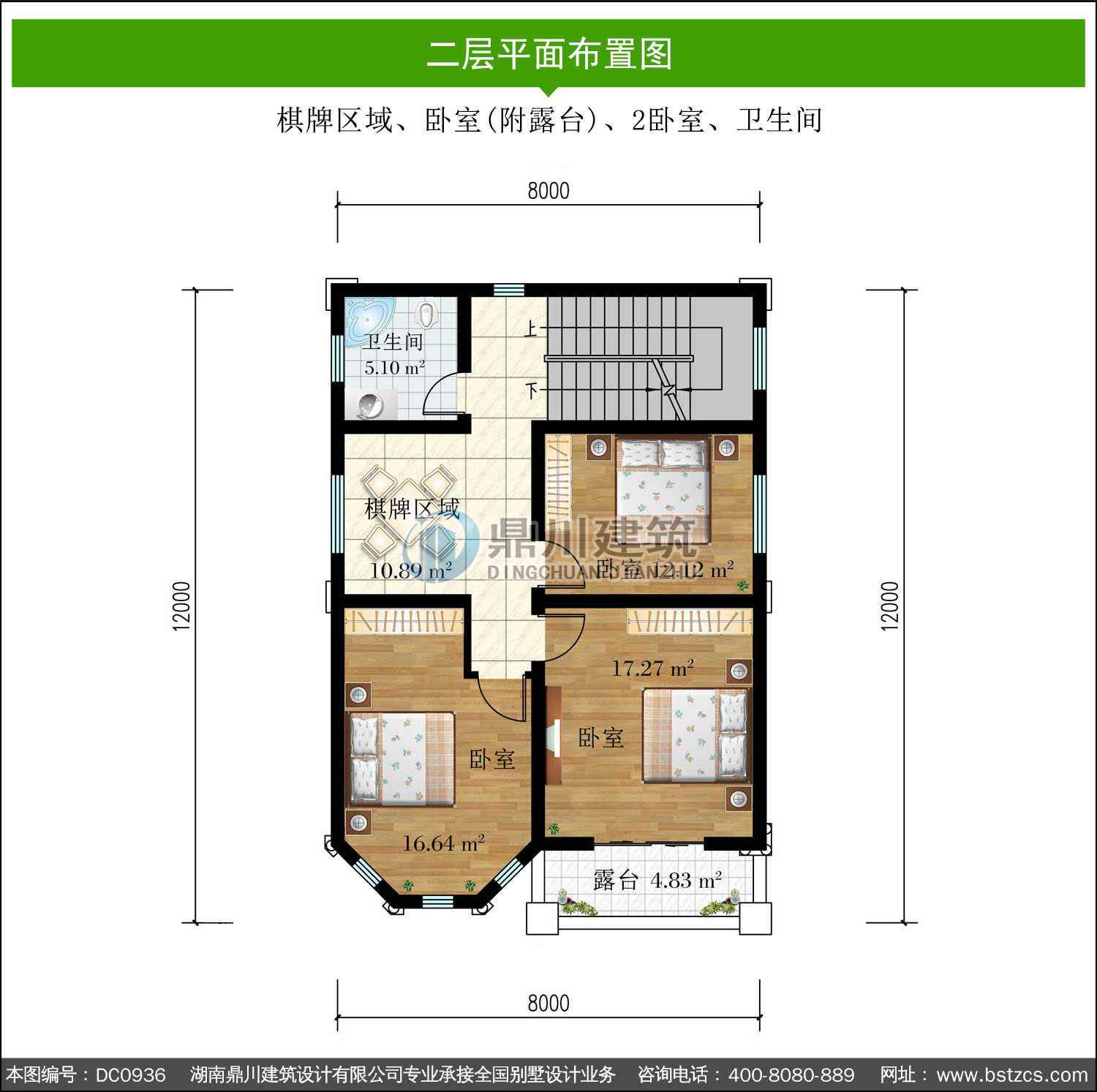 | 二 層: | 棋牌區(qū)域、臥室(附露臺)、2臥室、衛(wèi)生間 | |||