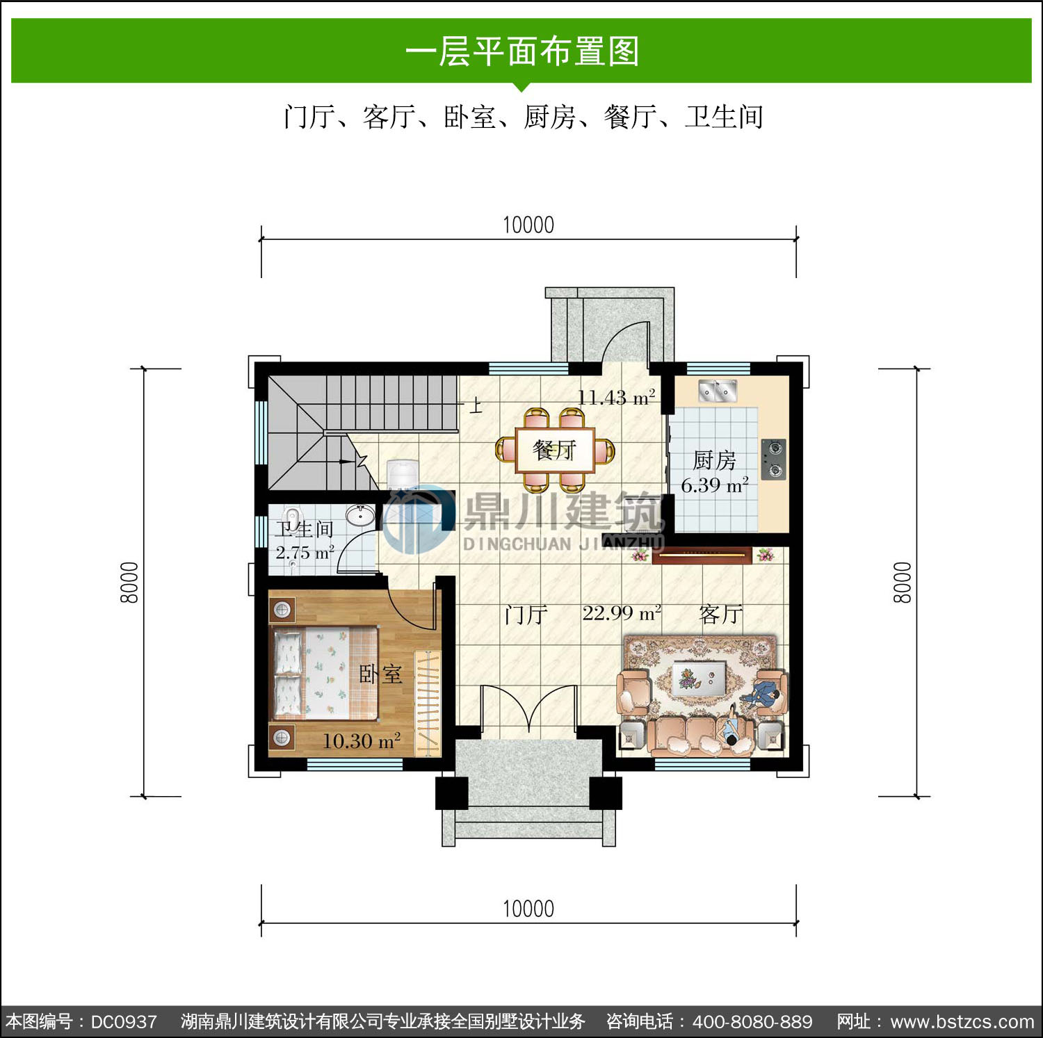 | 一 層: | 門廳、客廳、臥室、廚房、餐廳、衛生間 | |||