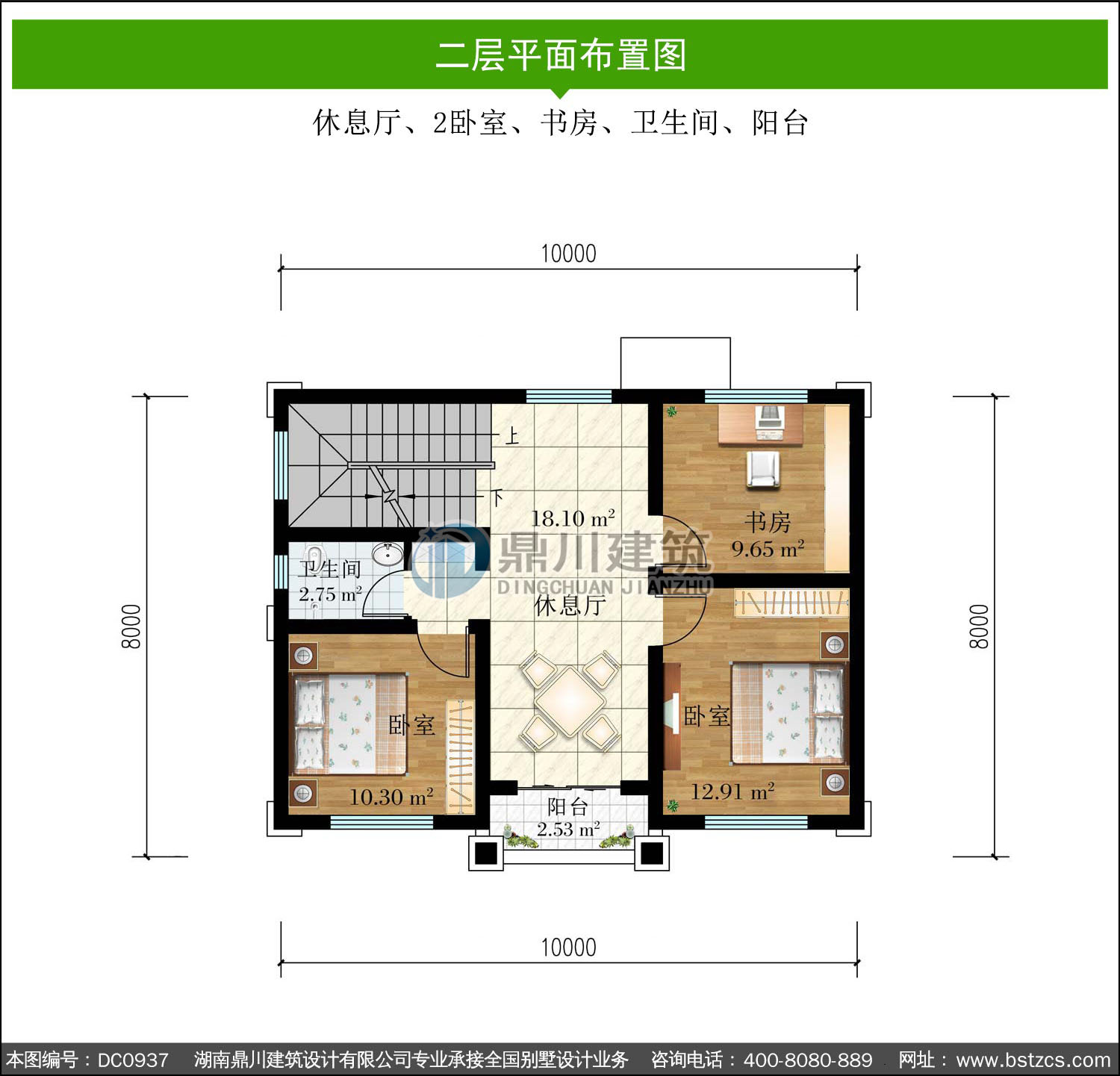 | 二 層: | 休息廳、2臥室、書房、衛生間、陽臺 | |||