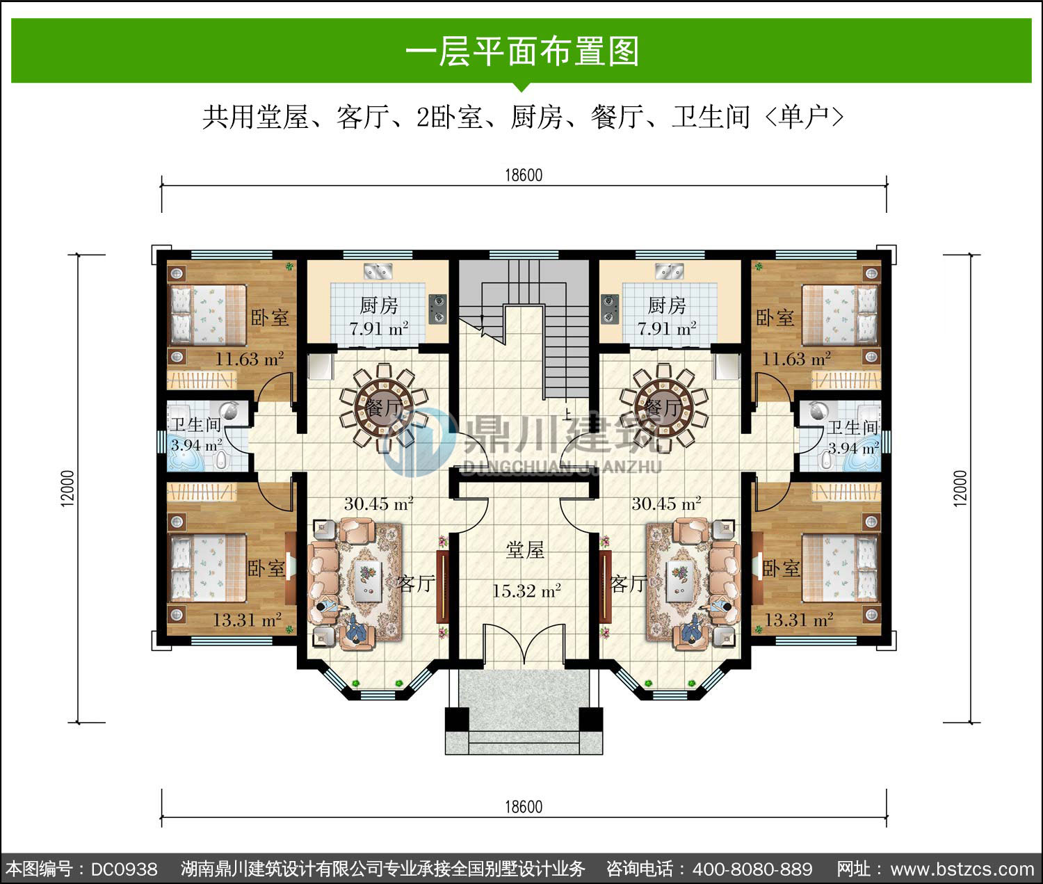 歐式兩層共堂屋雙拼別墅設計圖紙及效果圖_農村兄弟自建房設計,鼎川建筑