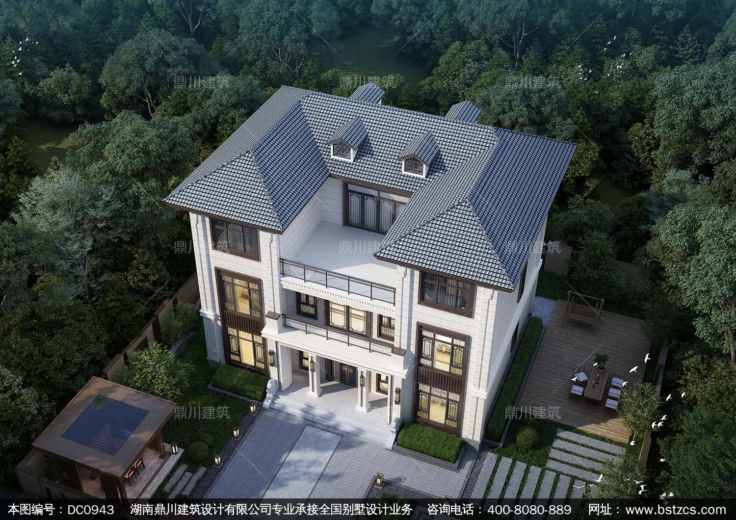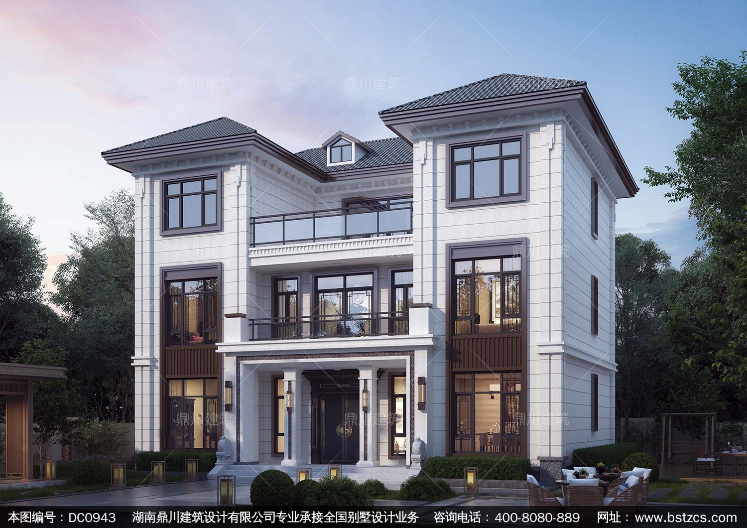 大氣三層新中式別墅設計圖紙及效果圖_農村自建別墅設計,鼎川建