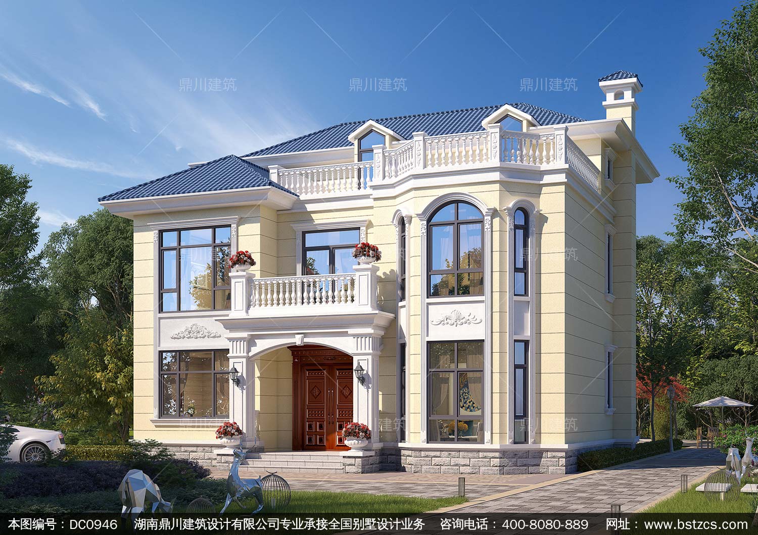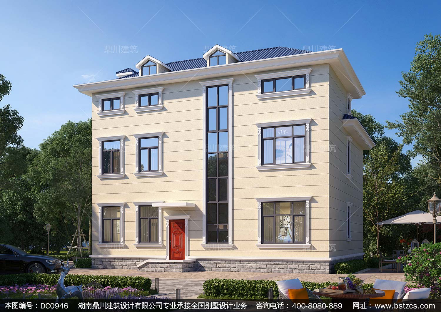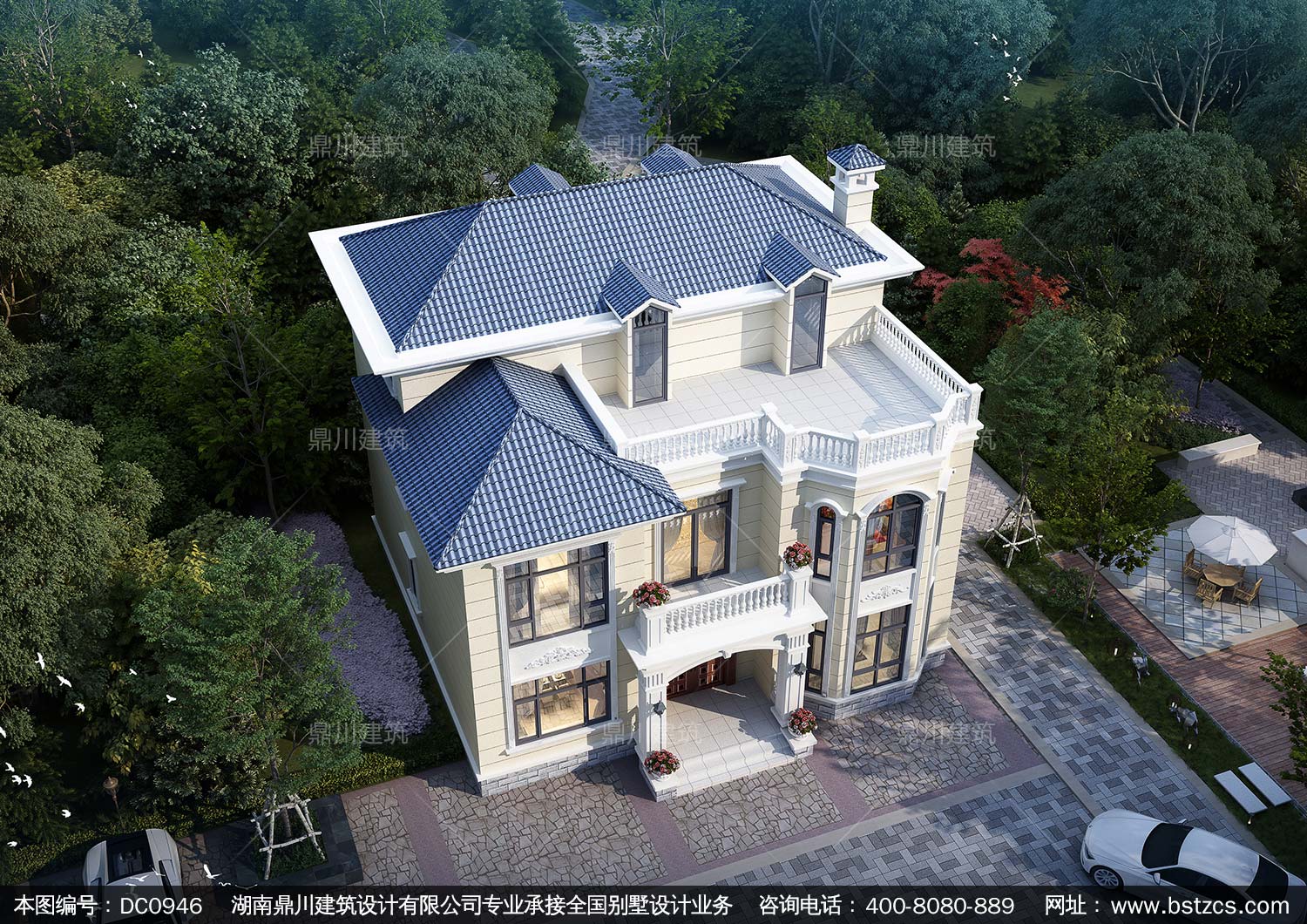 歐式兩層半帶露臺別墅圖紙及外觀效果圖_新農村自建房設計,鼎川建筑