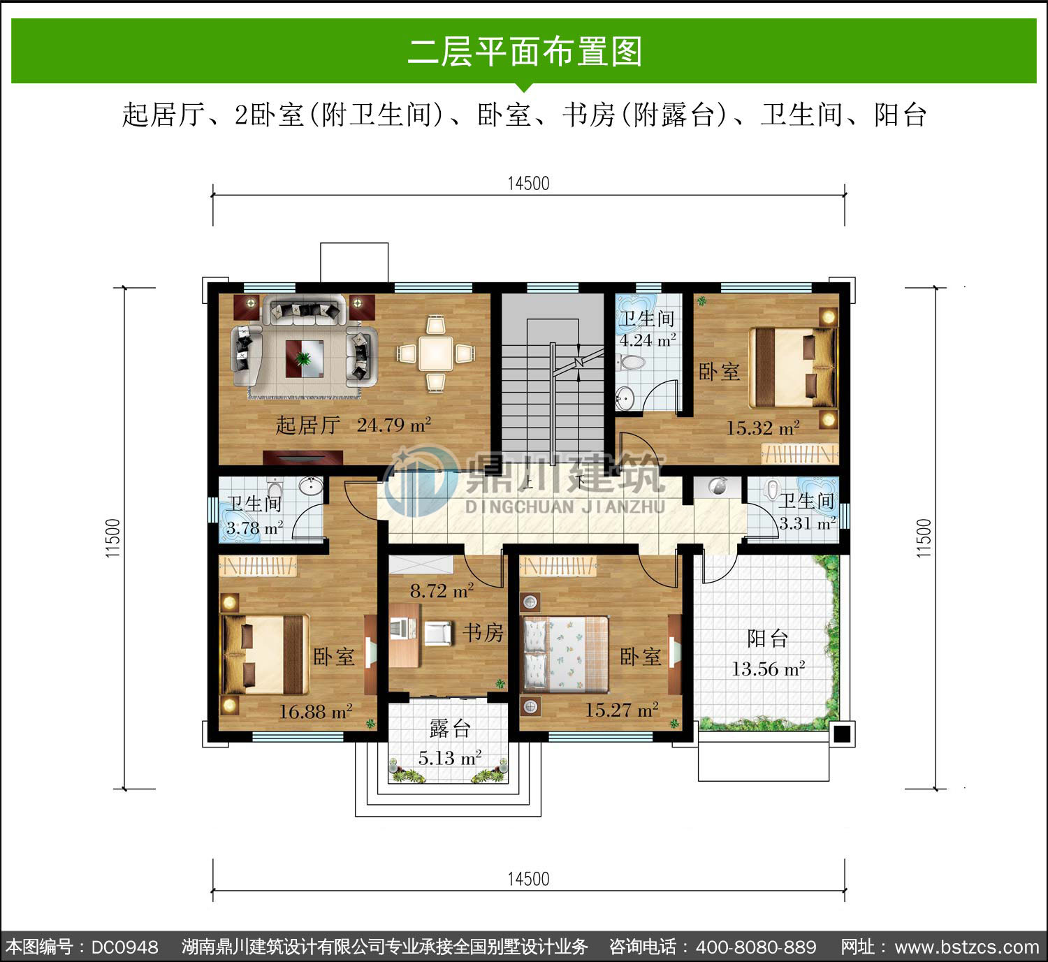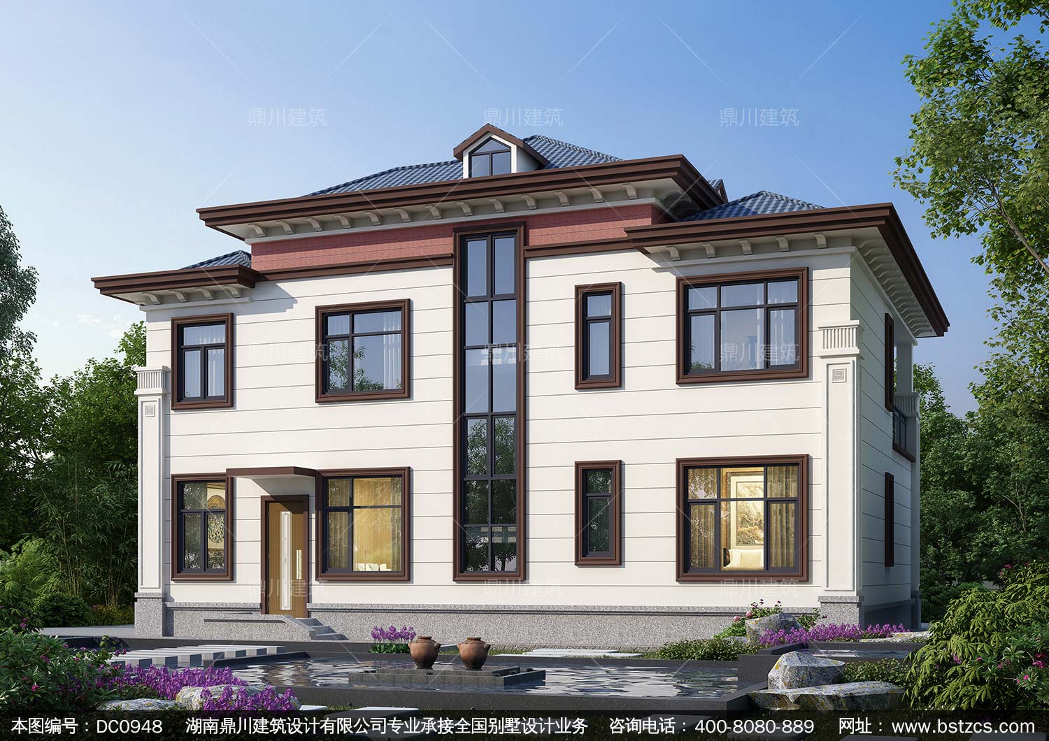 大氣新中式二層別墅效果圖及全套施工圖紙_農村自建房設計,鼎川