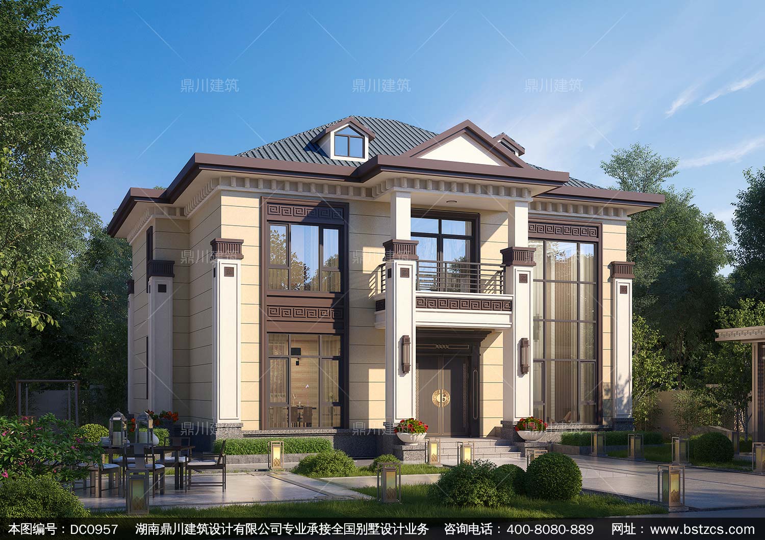 大氣新中式兩層別墅全套施工圖紙及效果圖_農村自建房設計,鼎川