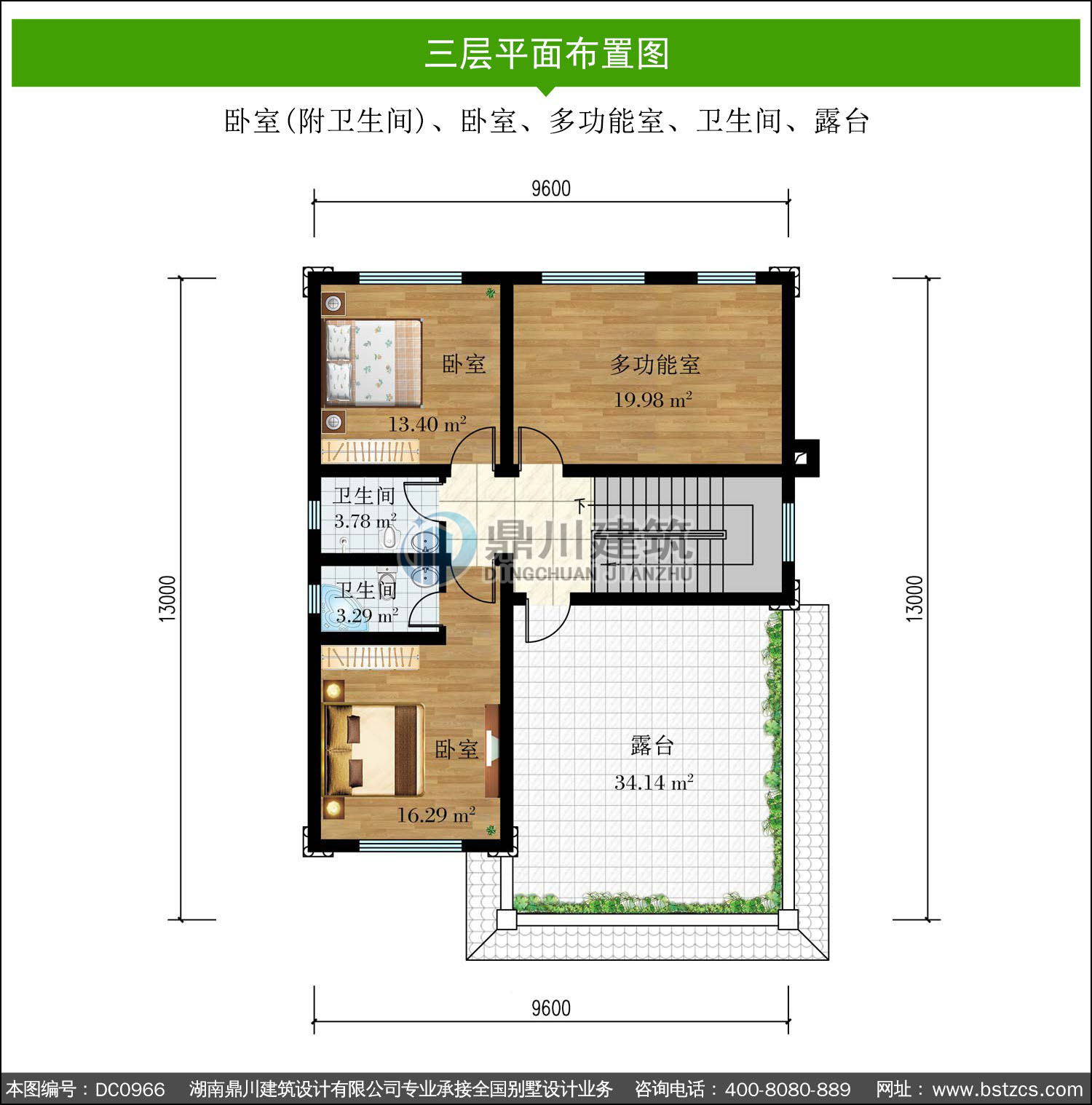 | 三 層: | 臥室(附衛生間)、臥室、多功能室、衛生間、露臺 | |||