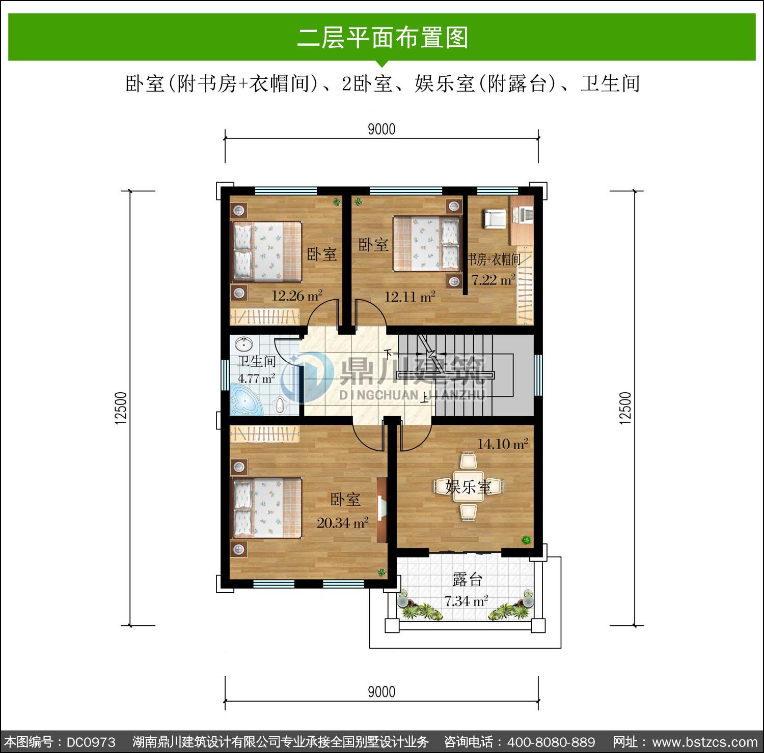 | 二 層: | 臥室(附書(shū)房+衣帽間)、2臥室、娛樂(lè)室(附露臺(tái))、衛(wèi)生間 | |||