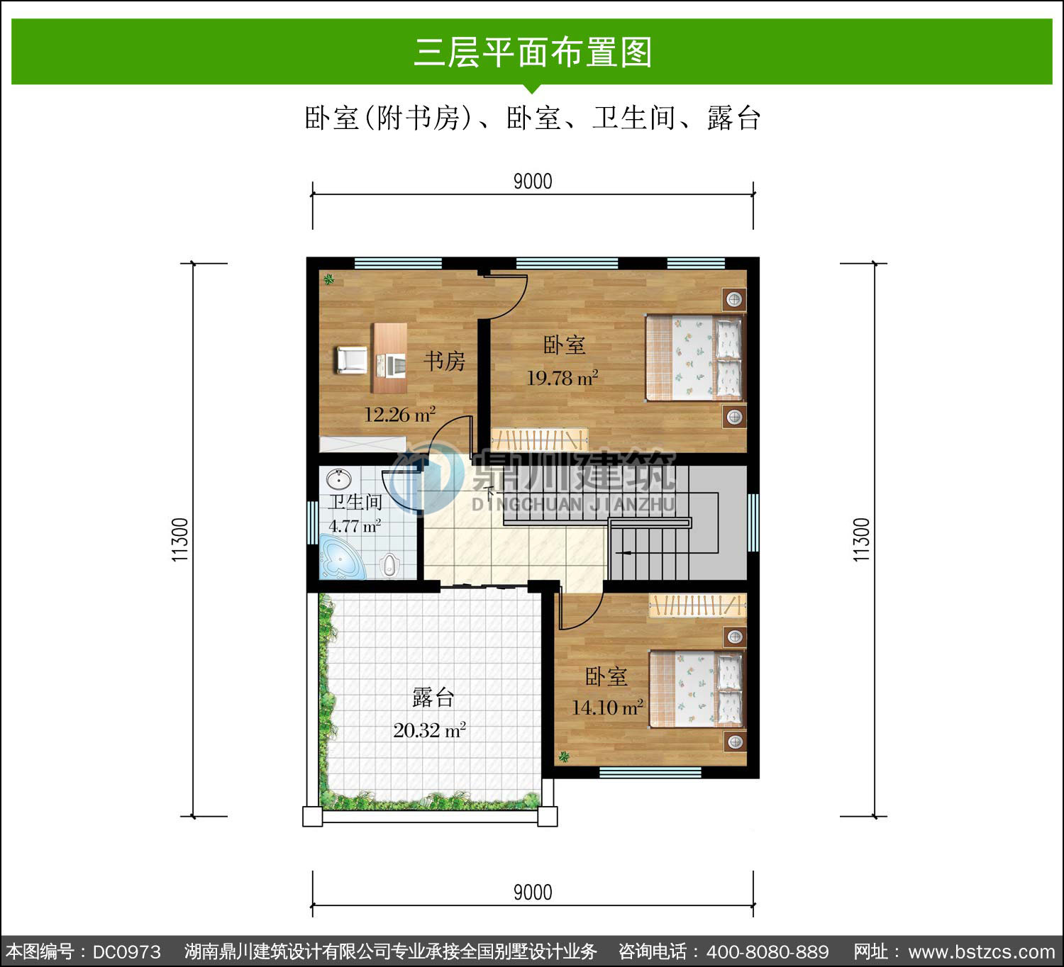 | 三 層: | 臥室(附書(shū)房)、臥室、衛(wèi)生間、露臺(tái) | |||