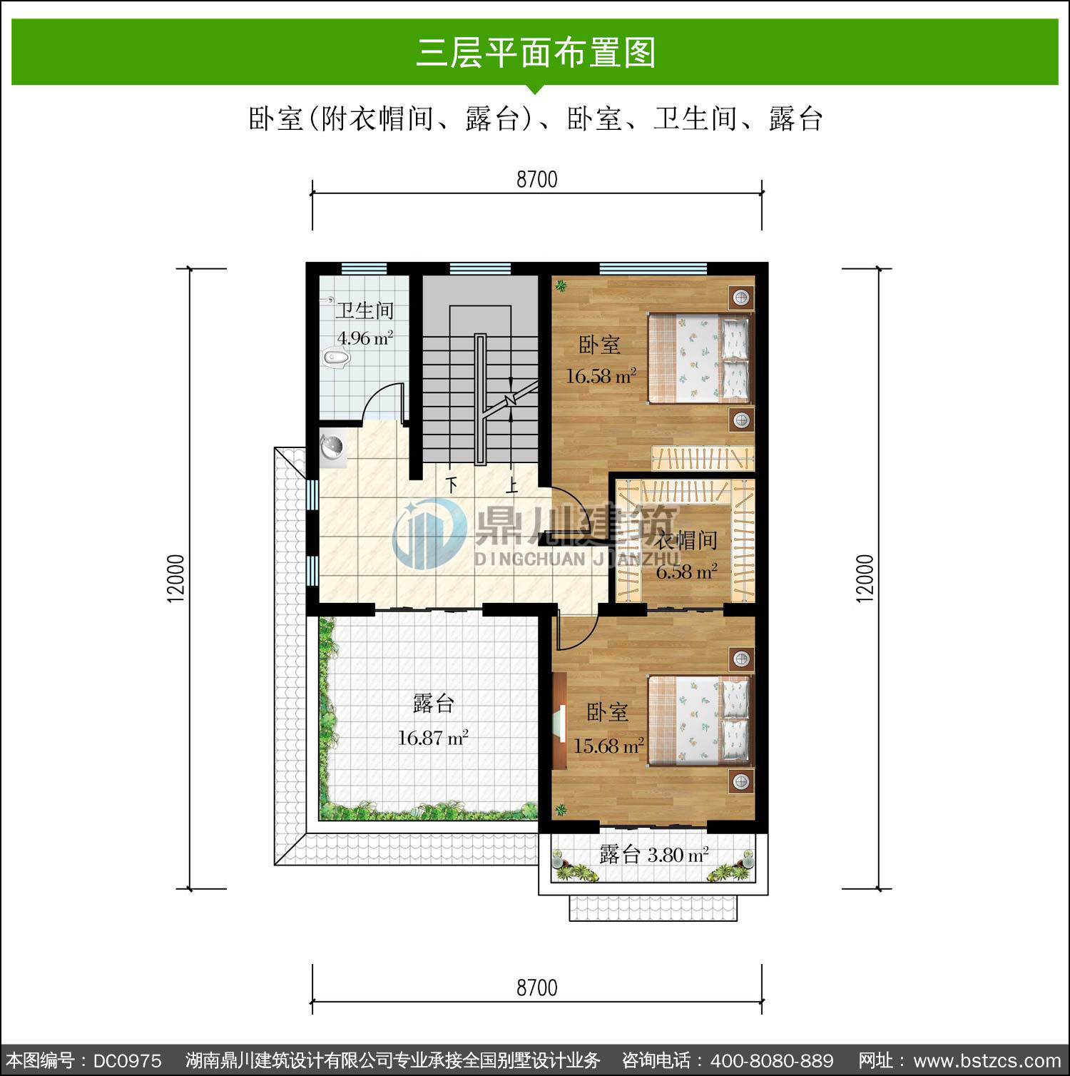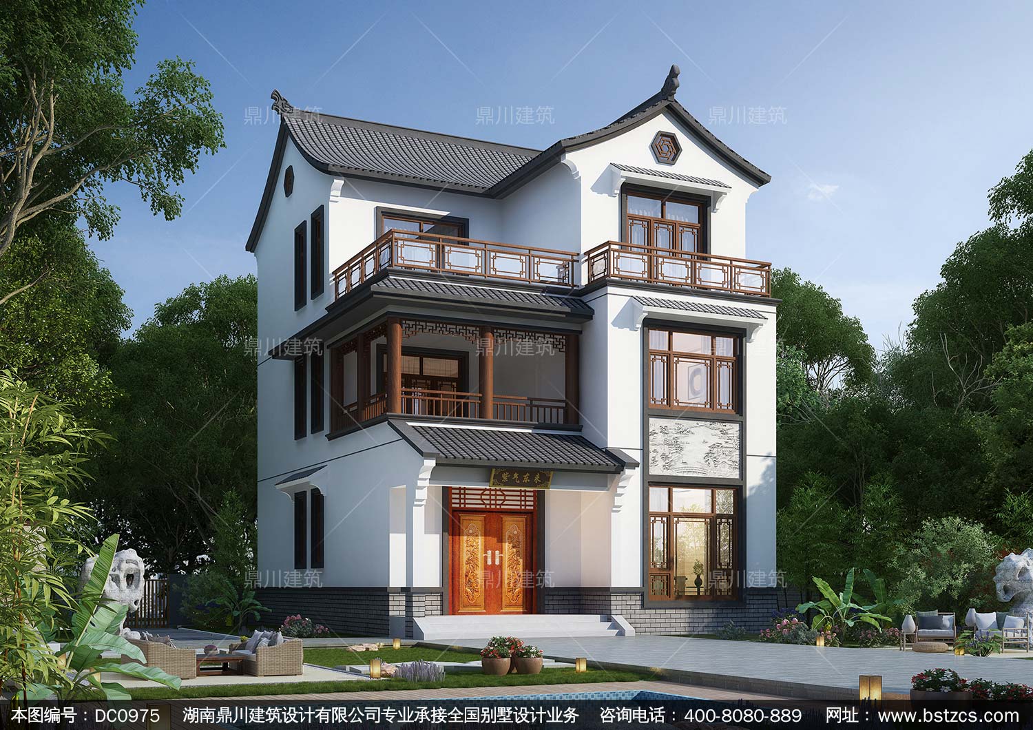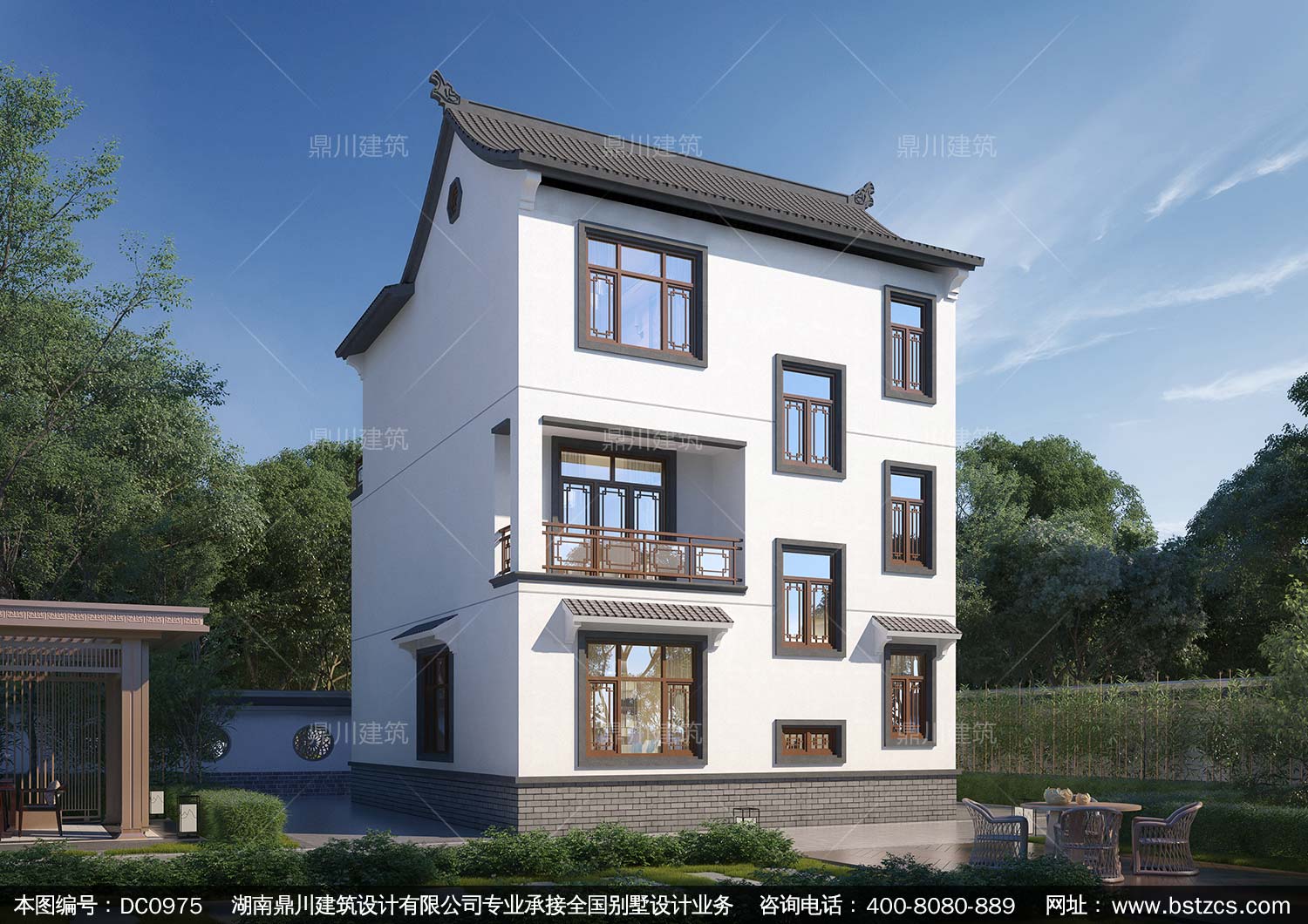 中式三層帶露臺(tái)小戶型別墅施工圖紙_農(nóng)村自建別墅設(shè)計(jì),鼎川建筑