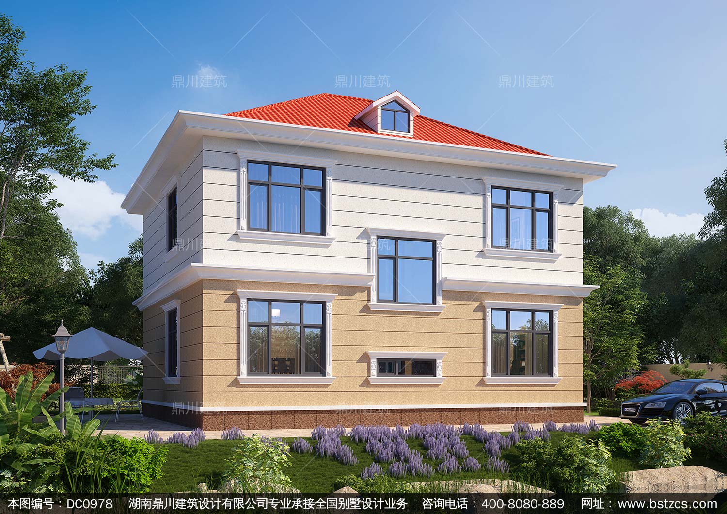 二層簡約帶陽臺小別墅效果圖及施工圖紙_農村自建房設計,鼎川建