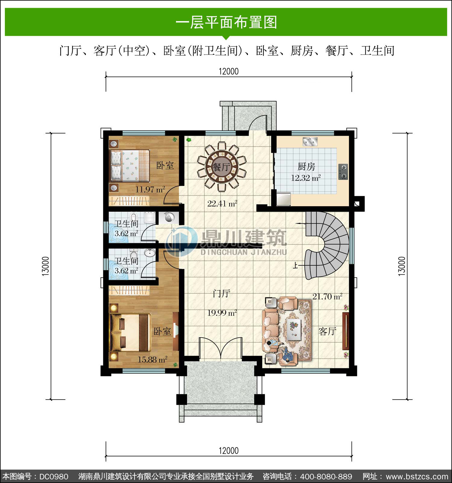 大氣復式三層帶旋轉樓梯別墅圖紙及效果圖_農村自建房設計,鼎川建筑