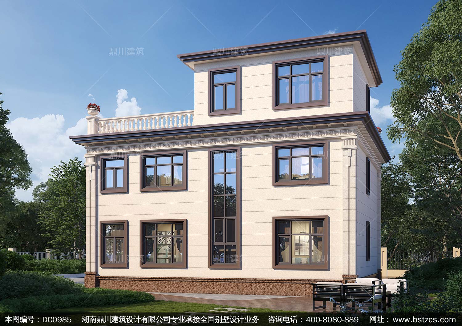 新中式三層復(fù)式別墅圖紙及效果圖_農(nóng)村平屋頂別墅設(shè)計(jì),鼎川建筑