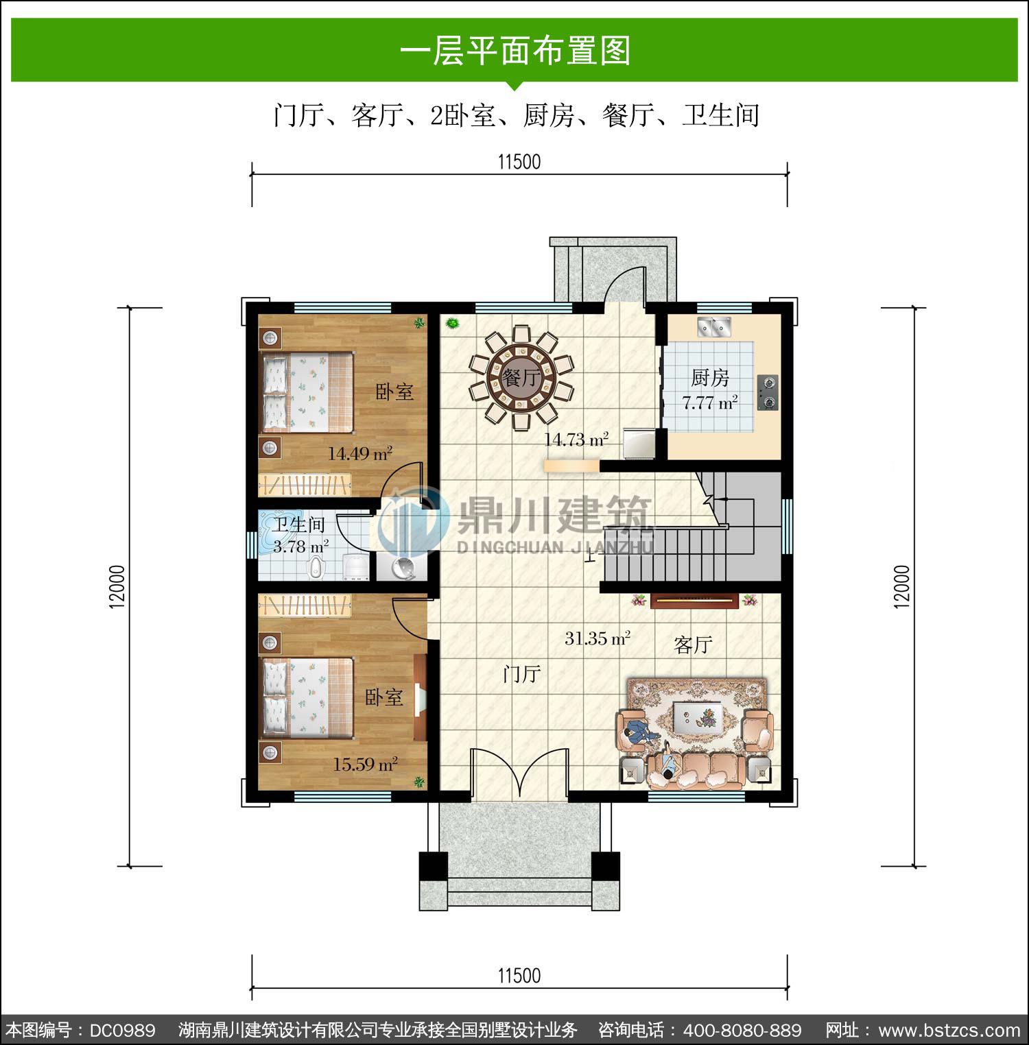 | 一 層: | 門廳、客廳、2臥室、廚房、餐廳、衛生間 | |||