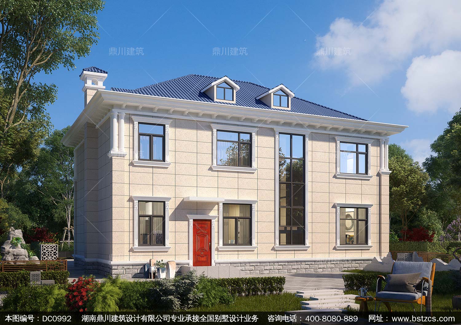 歐式二層帶陽臺別墅施工圖紙及效果圖_新農村自建房設計,鼎川建筑